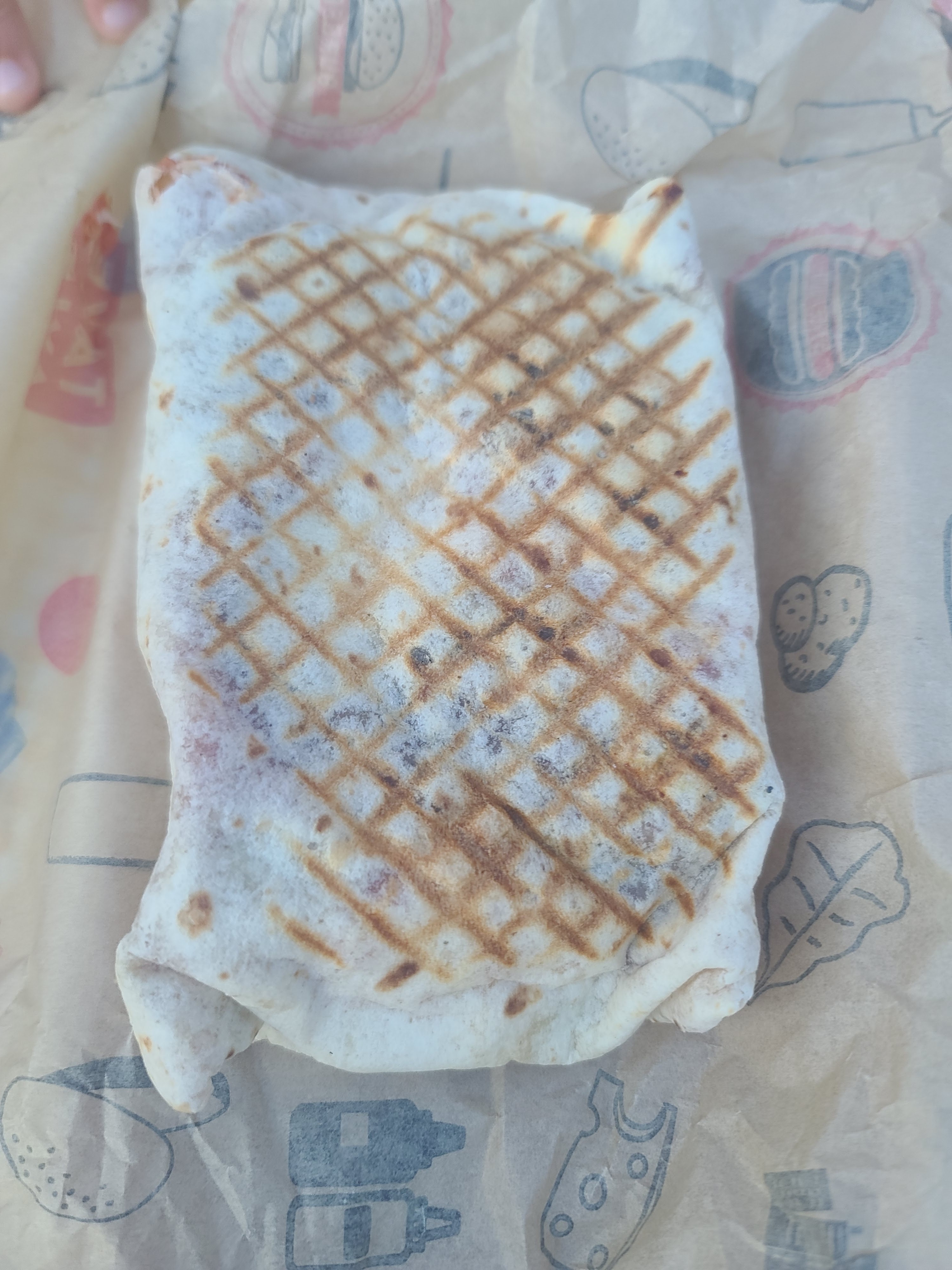 Premier passage dans ce tacos, je trouve qu’il y a très peu d’hygiène, car la caissière porte des gants latex gras qu’elle utilise pour toucher l’argent et ensuite la nourriture (viande,pain…)