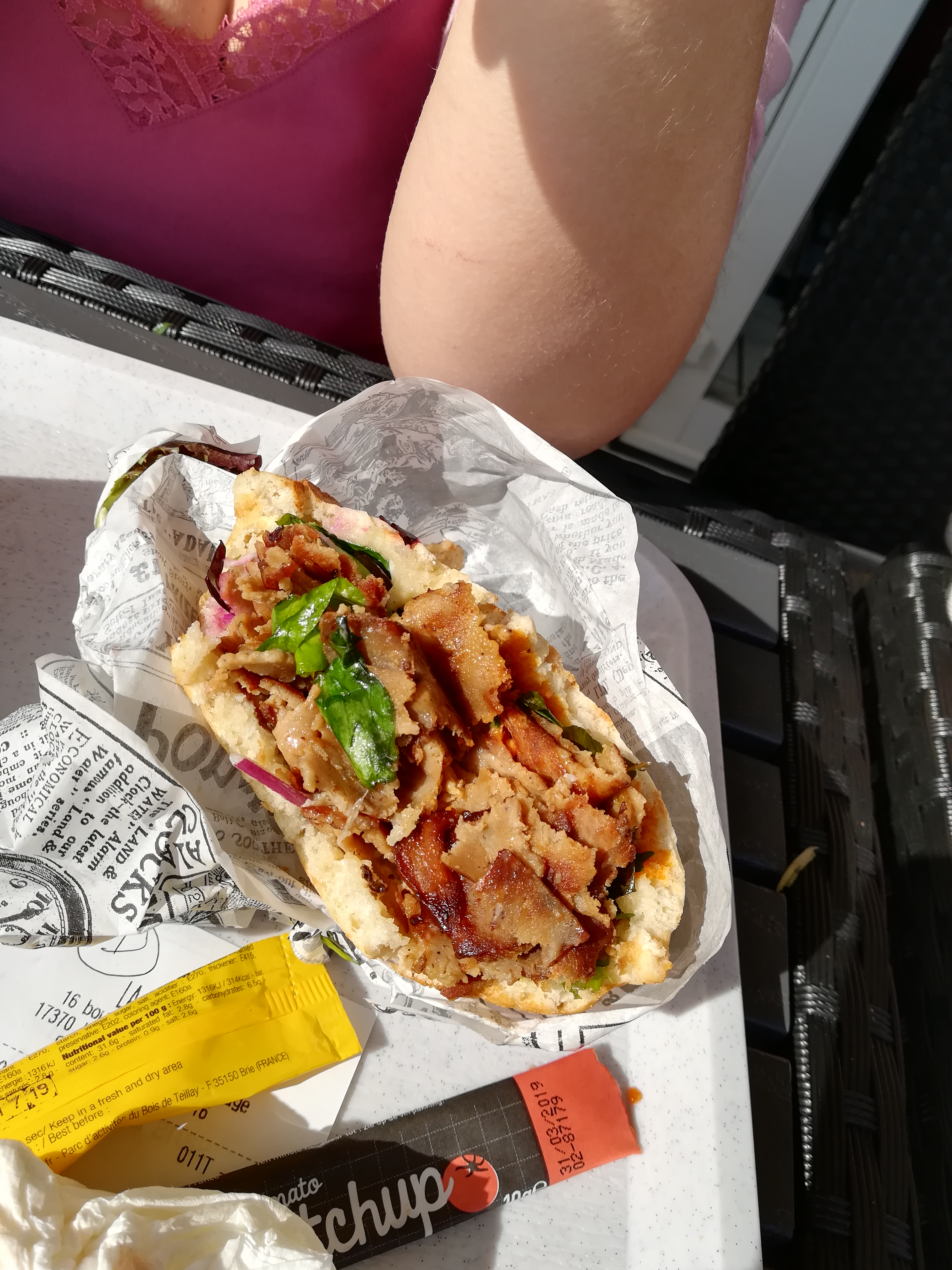 Déçu de la viande de kebab reconstituée. Le goût est bon mais pour moi un kebab c'est de la vraie viande. Idem pour le burger chassiron qui contient du poulet pané aux cornflakes en viande reconstituée. Quand je sors manger j'estime avoir droit à de la viande de qualité