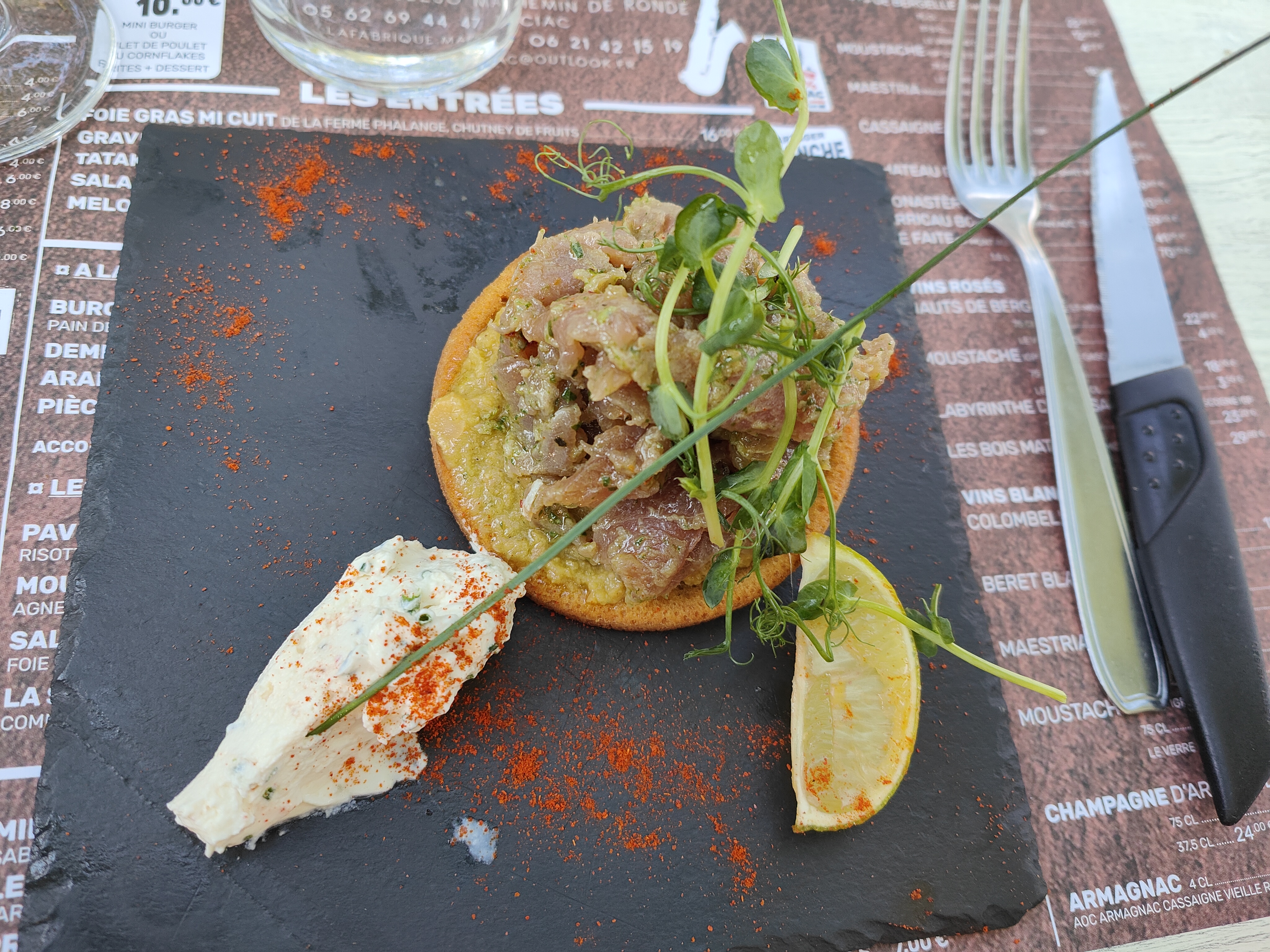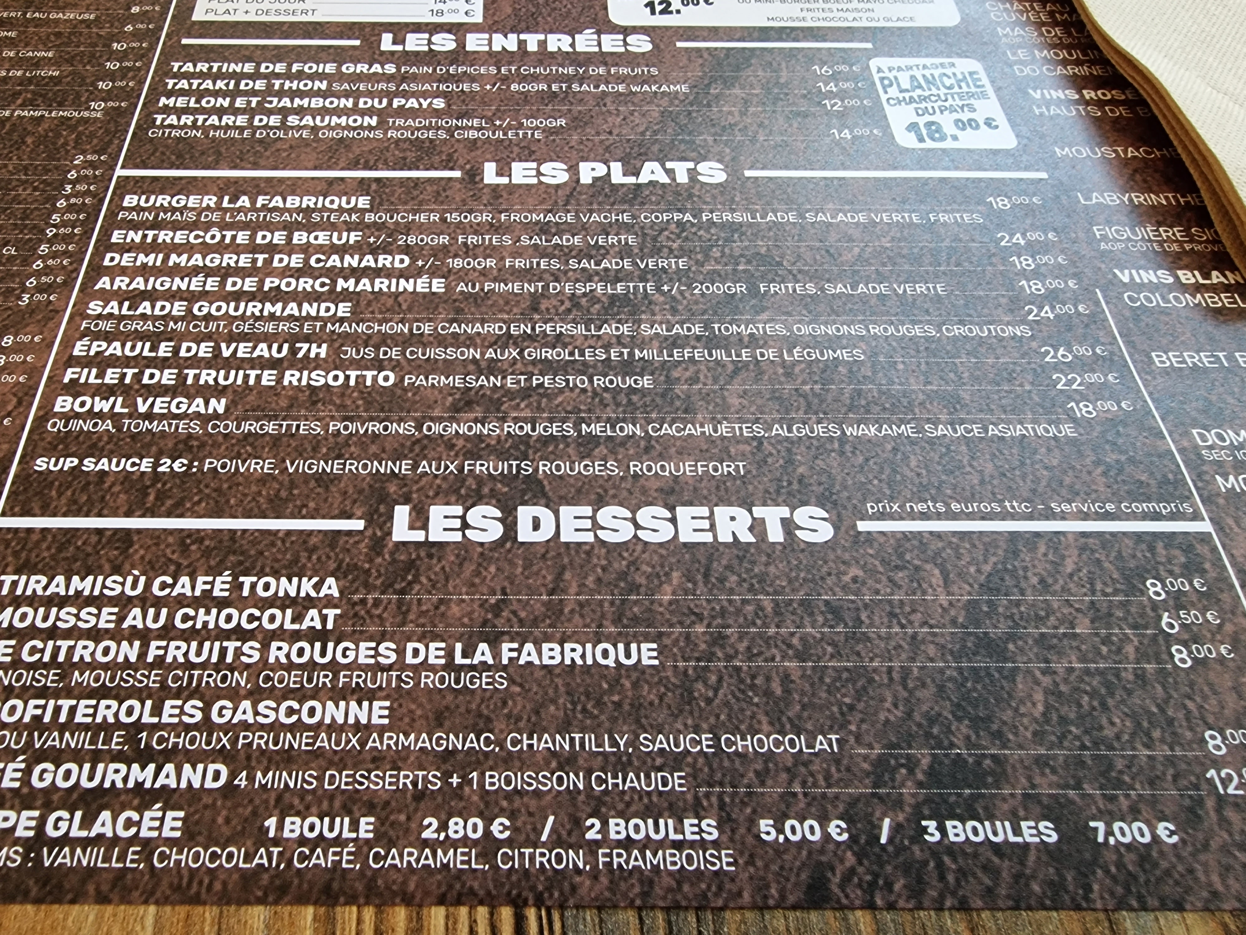 Malgré les restrictions sanitaires on se régale avec les menus variés à emporter de la Fabrique. Nous sommes en vacances pour la semaine et nous avons découvert ce restaurant par hasard en faisant un tour de Marciac. Top top top !!! Vivement un prochain séjour sans covid pour profiter de la terrasse et de l'éventail des plats proposés. Bravo à l'équipe ! Je recommande vivement