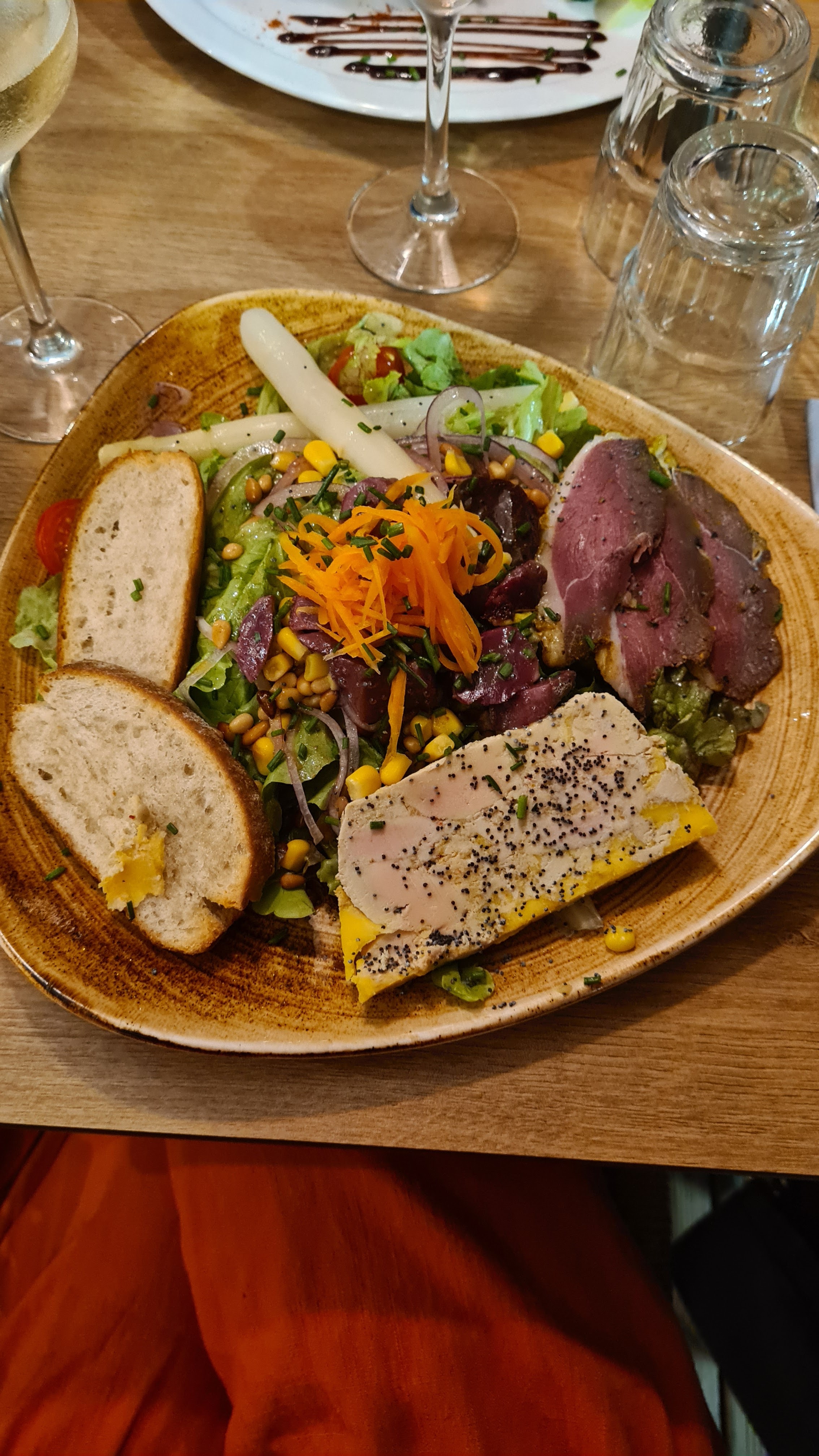 Super bon,salade landaise un régal avec le foie gras poêlé une tuerie. Personnels très agréable, merci au plus jeune serveur qui nous a trouvé une place malgré le monde.