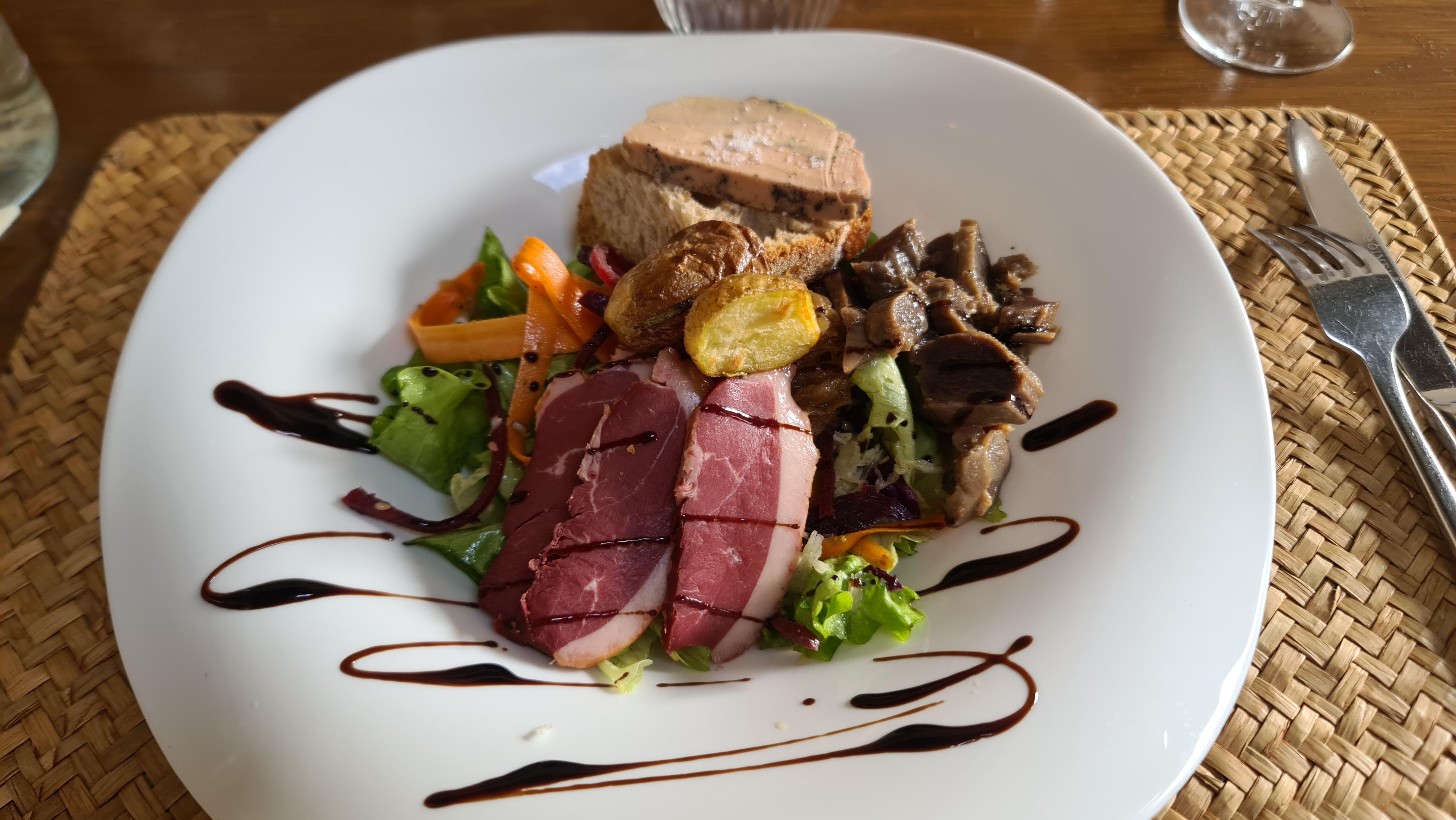 Parfait ! Une jolie adresse avec des produits frais et des bonnes saveurs pour les papilles . La salade était tout simplement excellente avec des produits du terroir vraiment savoureux ( foie gras, magret seché…) le menu pour les enfants était bon et soigné sur la présentation. Le dessert (pavlova ) excellent on apprécie le fait qu’il était léger et peu sucré . Bref une adresse à retenir !