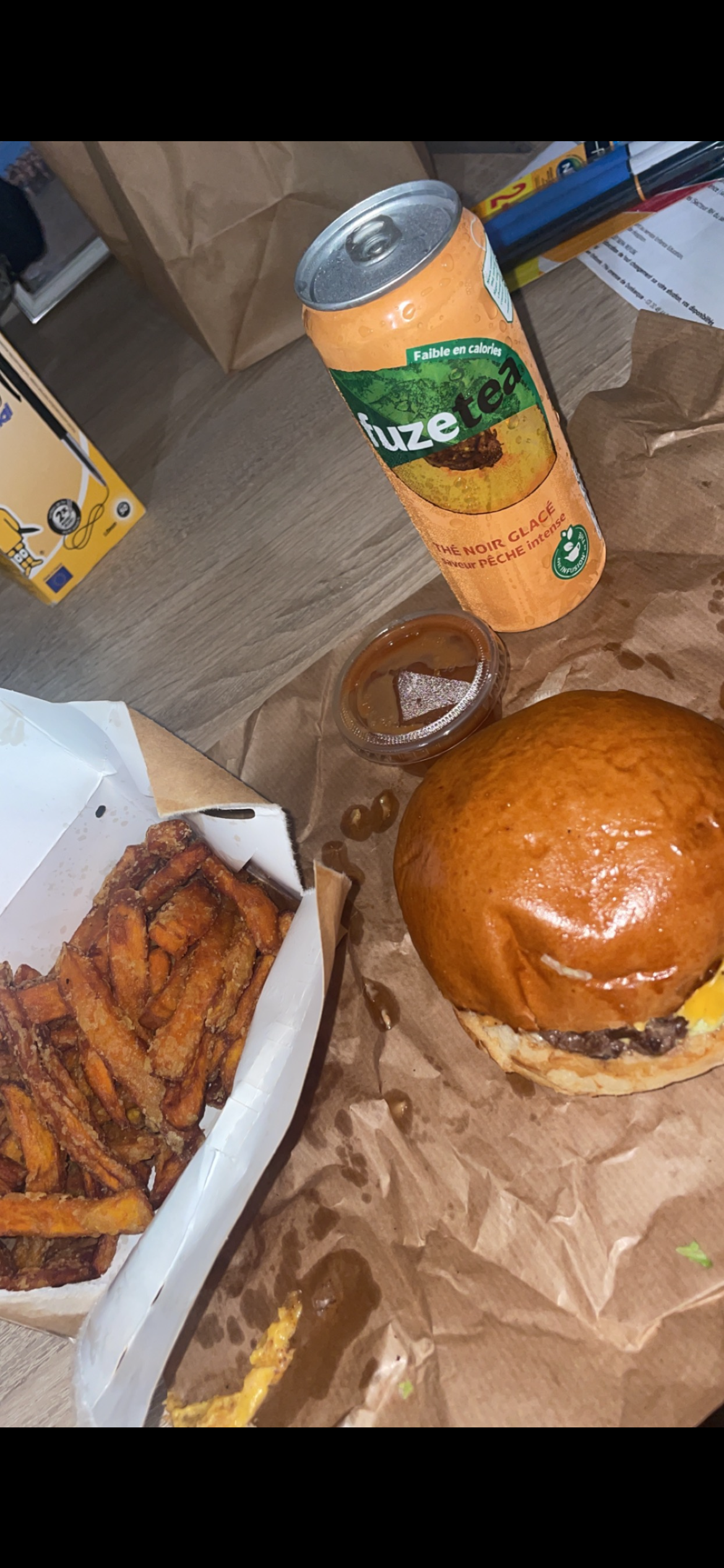 - Les photos (Uber Eats) présentent du vrai cheddar, mais ce que vous livrez de rapproche du fromage à croque-monsieur en supermarché. - Pourquoi disposer les canettes sur les burgers dans vos commandes livrées ?