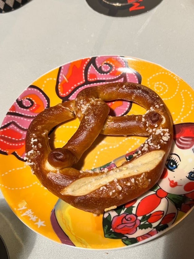 Nous avons choisi d'aller dans cet établissement justement pour l'ambiance, super sympa mais accueillante. Le personnel était super sympa et serviable, bon pour communiquer en anglais. Nous avons bu du vin et de la bière et les deux étaient très bons. Nous avons également mangé une tarte flambée pour le dîner, qui était excellente et très savoureuse. Nous avons également essayé le bretzel, ce qui était ce qu'il avait promis, malheureusement il n'y avait que le bretzel nature.