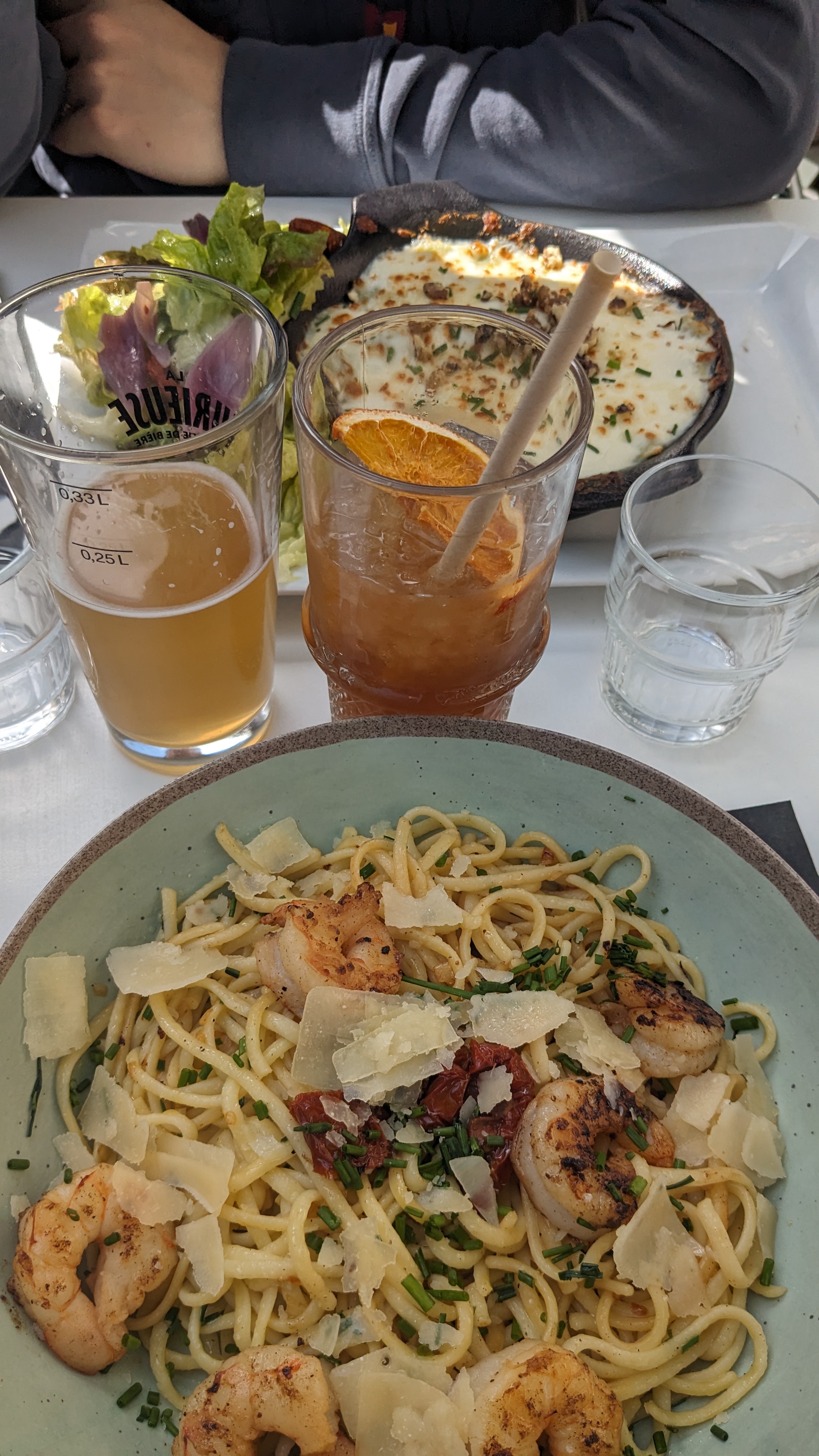 C'est un super restau ! Nous y avons passé un bon moment et on y retournera sûrement. Nous avons mangé sur la terrasse. Les plats étaient délicieux et généreux. J'ai adoré le wok aux poulpes c'est vraiment un délice et les cocktails étaient très bons 😊 Même si le service était un peu lent, nous avons quand même apprécié l'accueil des serveurs. Le seul bémol c'est qu'il y avait des pigeons qui se promenaient autour de notre table pour chercher de la nourriture 😅