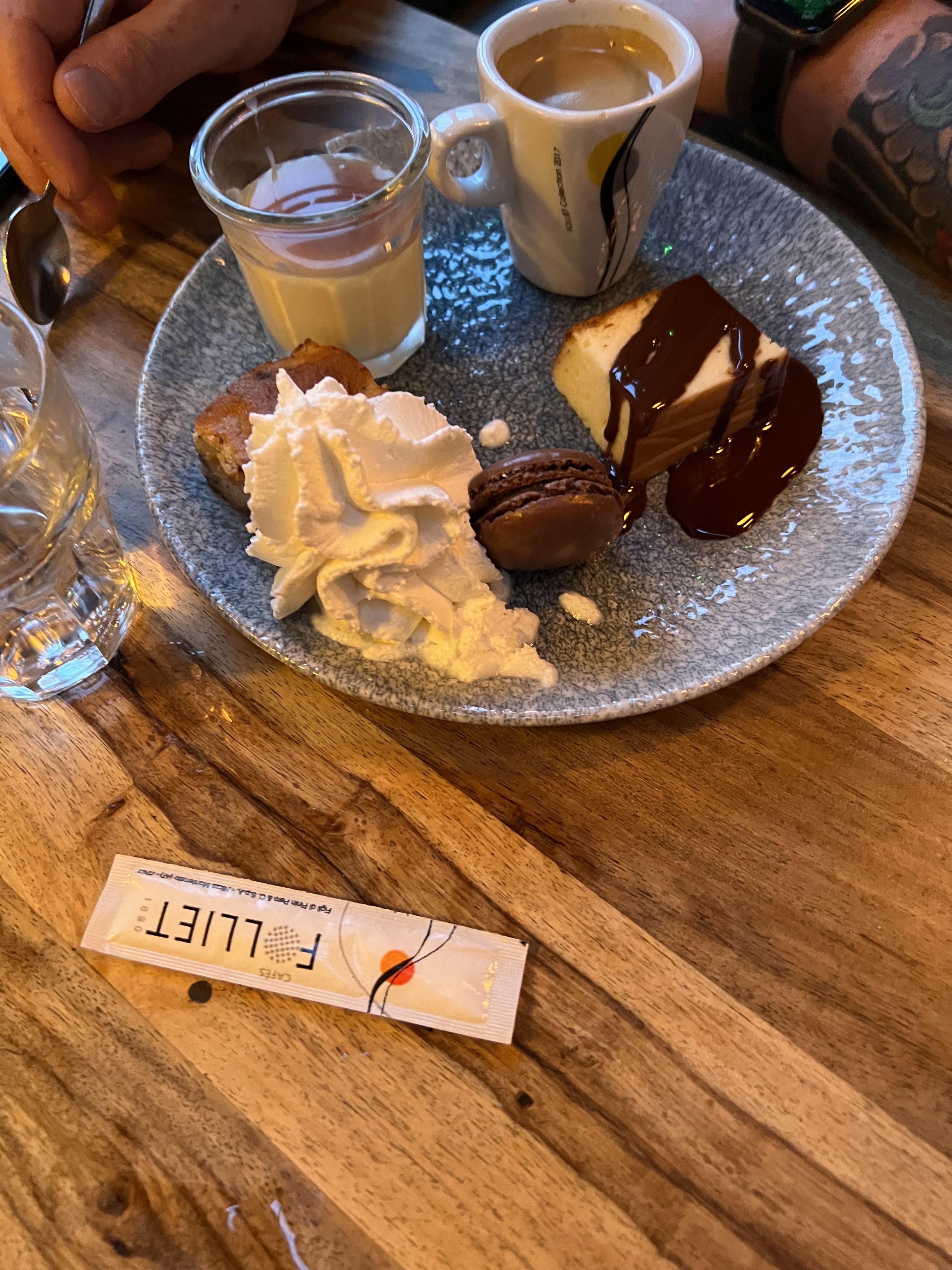 Lieu très sympa avec choix variés à la carte, service très bien. Nous avons pris un wok de nouilles aux crevettes et une salade savoyarde. Je pense que les nouilles auraient pu être un peu plus généreuse mais c’était tout de même très bon. En dessert nous avons pris un chocolat liégeois et une brioche perdu 10/10 !!!