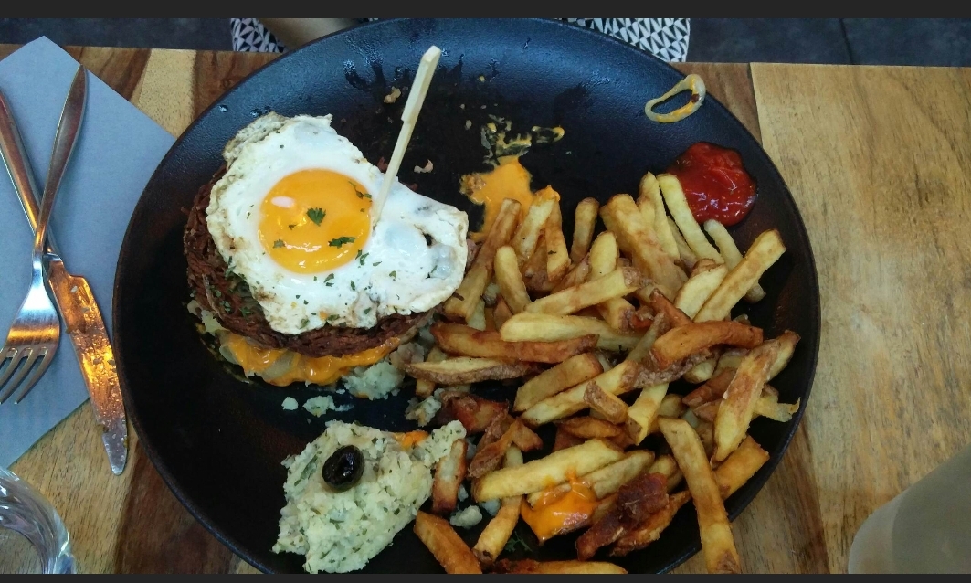 Ambiance et déco sympa dans le restaurant. Plats très bons et copieux, les burgers sont délicieux. Service rapide et personnel agréable bref je recommande