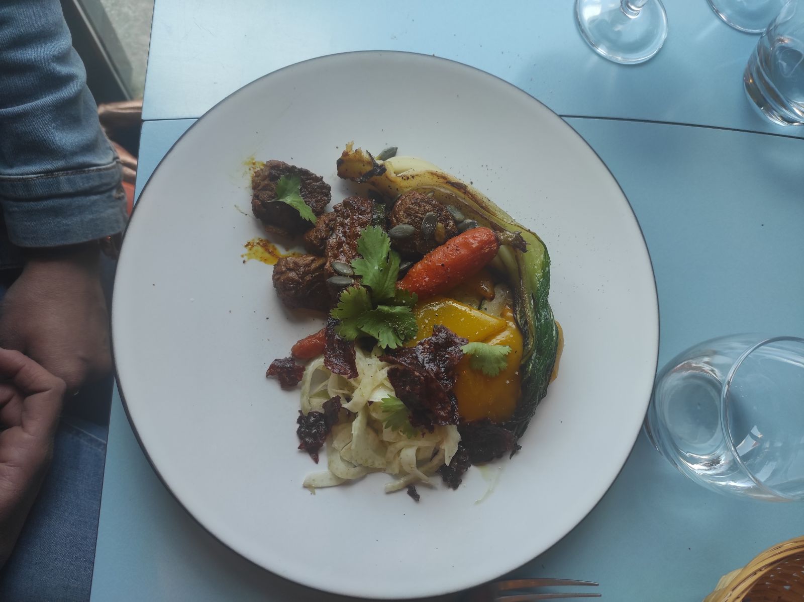 concept original de restaurant sur l'économie durable et circulaire, plat vegan , végétarien et classique. Personnel sympathique. A découvrir