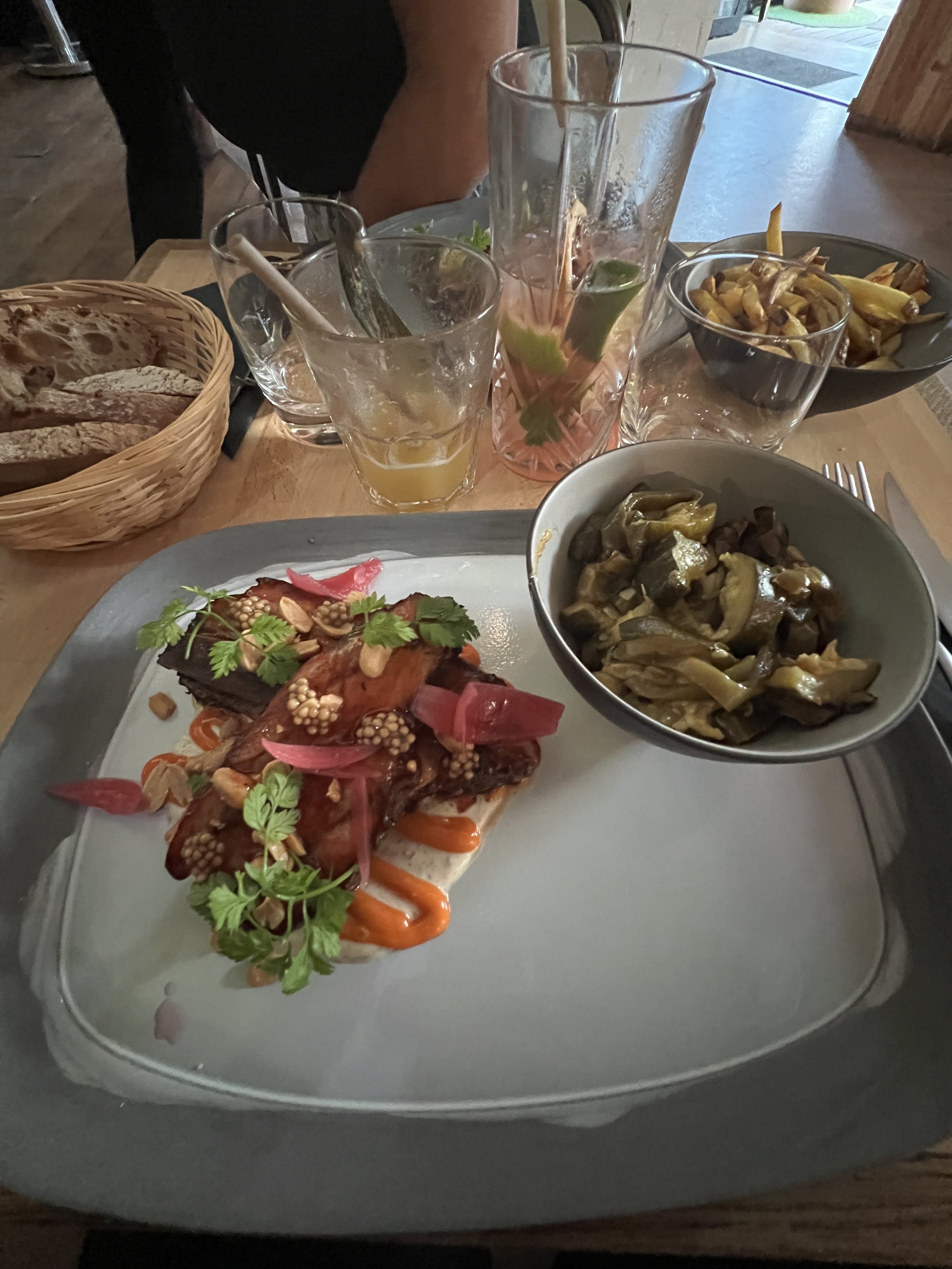 Le lieu est sympa, un peu bobo mais bobo sympa 😃 les serveurs sont sympas. Trop de soleil sur la terrasse sans parasol, dommage, trop sombre à l'intérieur mais très joliment décoré. Entrée et dessert absolument délicieux. Nous sommes restées sur notre faim quant au plat. Obligée de rajouter 4 euros pr deux petites ventrèches sans quoi on mangeait riz, un demi oignon, un navet et cinq petites chips patate douce. Une sauce mouais.... Donc une envie de revenir à l'occasion pour retenter mais quelques incertitudes tout de même.
