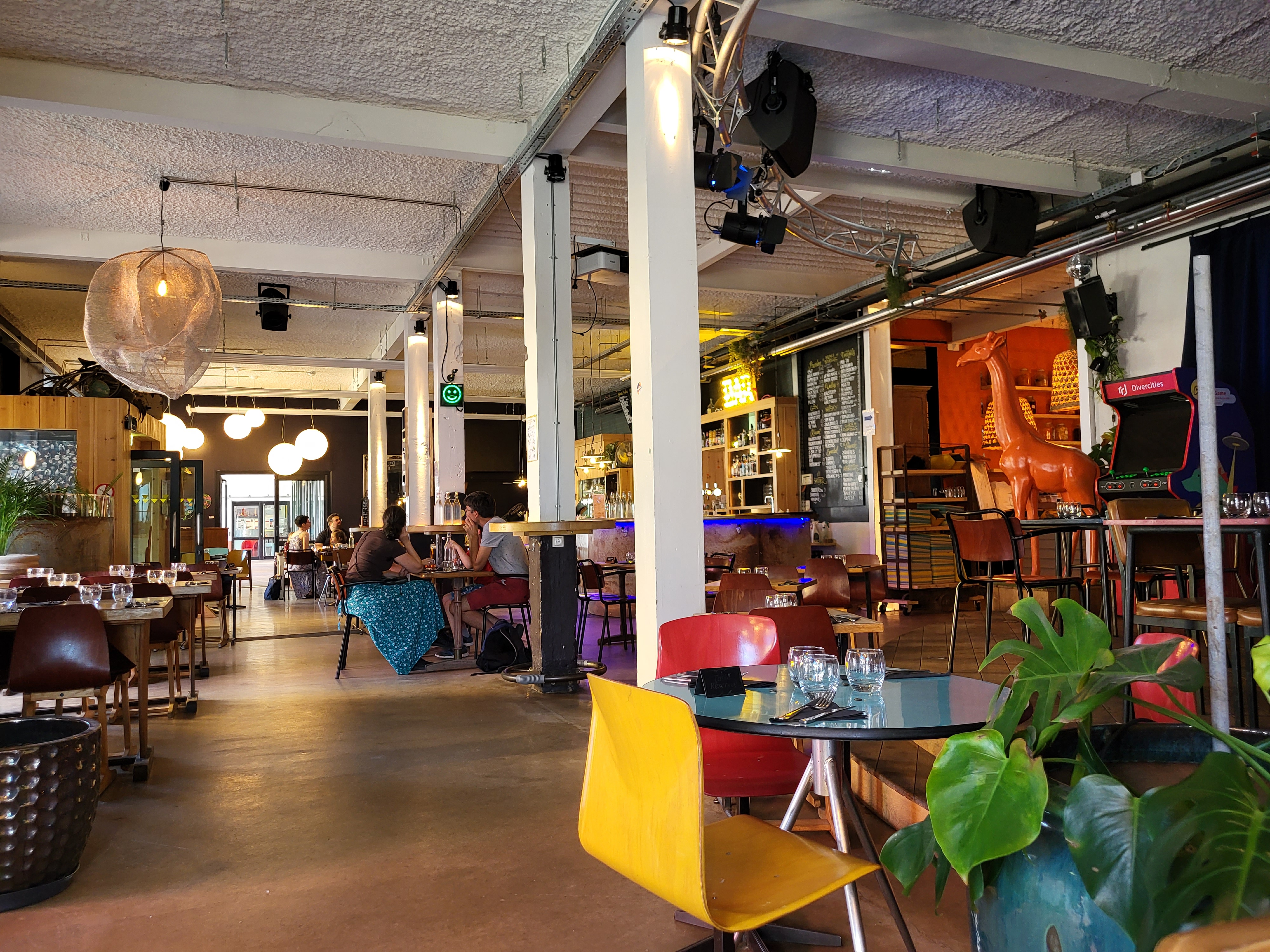 Ca bouge bien dans ce beau lieu. La déco style industrielle est chaleureuse tout comme le personnel. Les événements musicaux proposés sont de qualité, et ideal pour taper du pied comme il se doit. Les plats proposés sont composés a partir d'aliments récupérés afin d'eviter le gâchis alimentaire. C'est intelligent, ça fait plaisir !