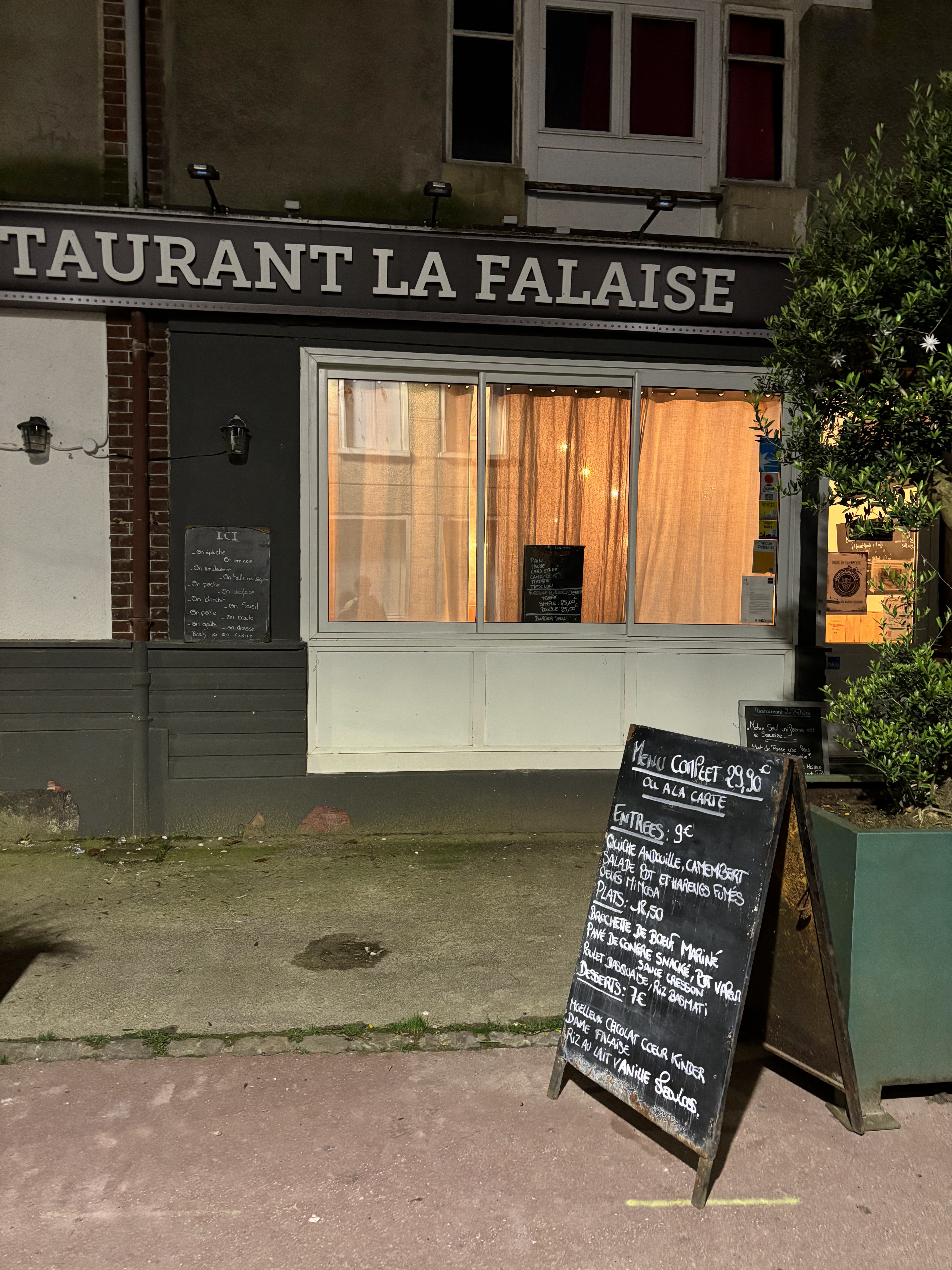 De passage à Yport pour le week end nous avons manger a la falaise et nous avons rarement aussi bien mangé ! Lieu et accueil chaleureux cuisine maison et généreuse, sauces exquises, viande délicieuse… et surtout très bon dessert ! Nous reviendrons sans hésiter !