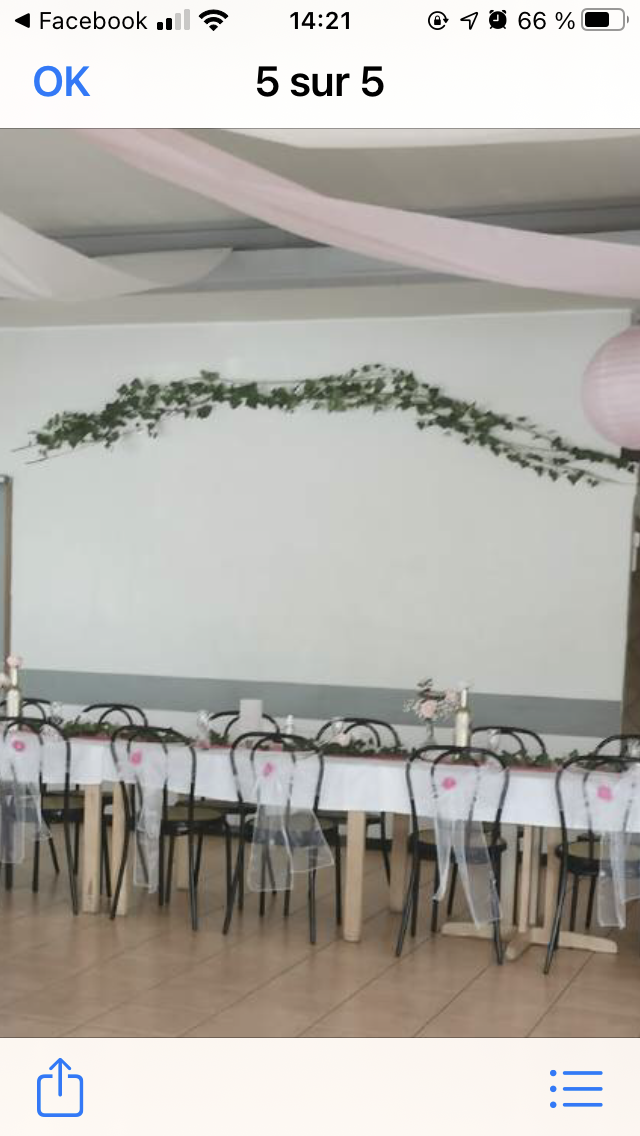 A fuir. !!!! Quelle déception. !!! Ce n'est pas une salle de réception mais une maison.!!..on a l'impression que tous les murs ont été enlevés pour en faire un grang salon..!! Et l'hygiène....!!!!..et l'extérieur..!!!!! C'est honteux. Vous avez des obligations envers les personnes que vous recevez. Vous êtes un ERP renseignez vous..!!! Je n'y mettrai plus les pieds..c'est une certitude.