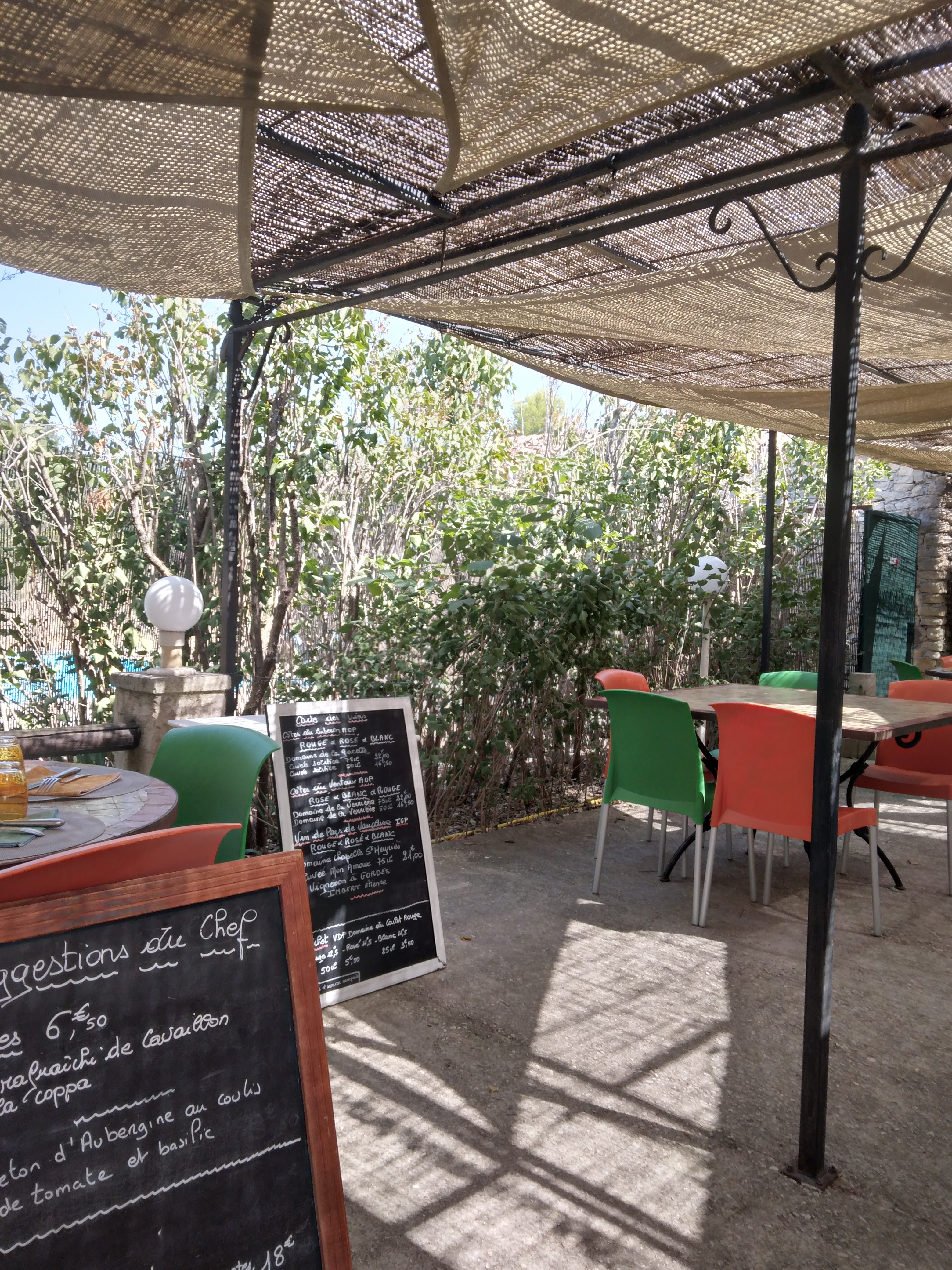 Coucou, Terrasse agréable, personnel accueillant et souriant. La nourriture y est bonne, du tartare de thon a l'agneau. Merci pour l'accueil, ce fut reposant et ressourçant, de quoi nous oublier cette chaleur parfois trop intense.
