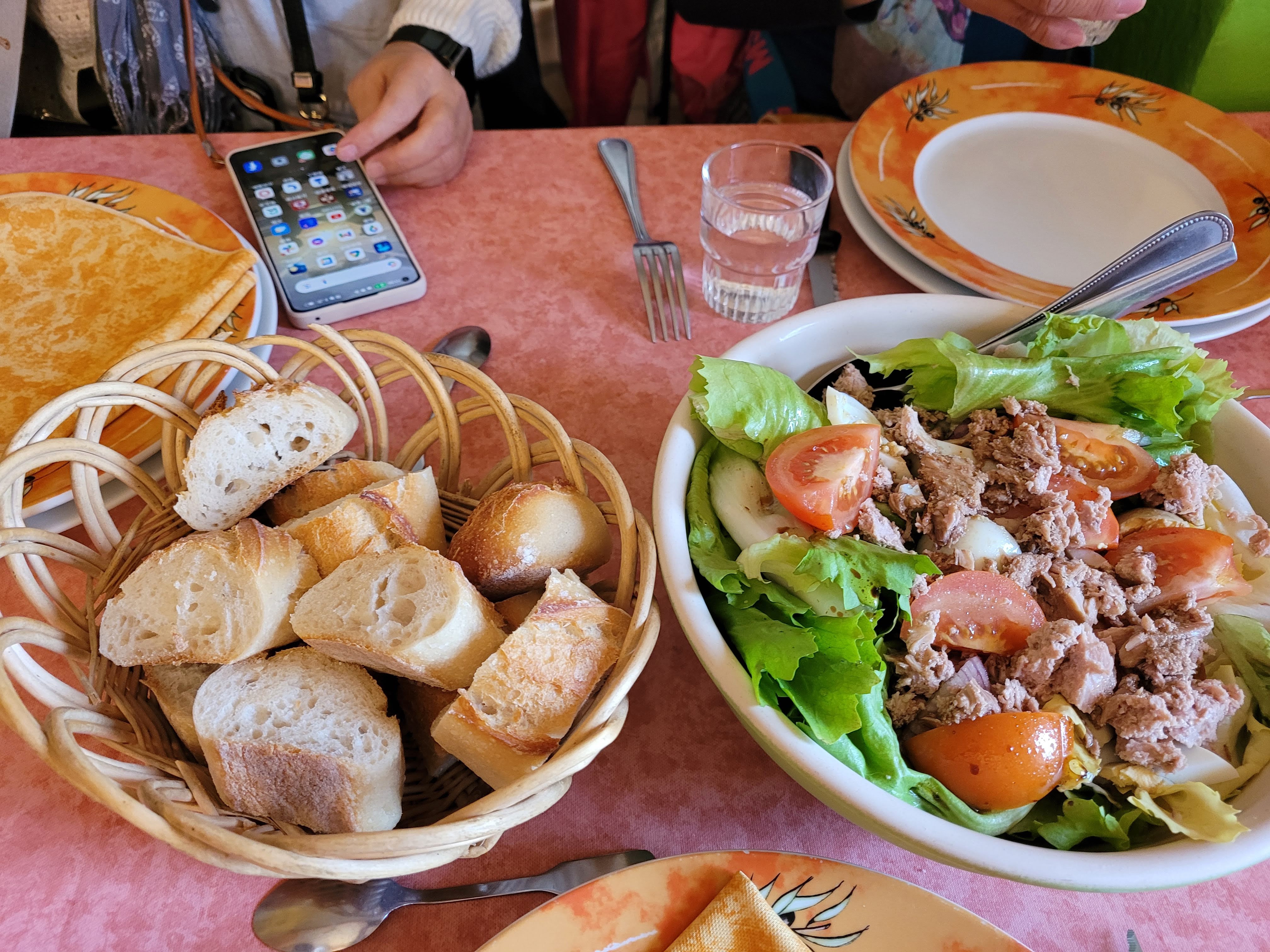 Bof. Sans +. Toasts de pain en guise d’apéro, très très dure, attention aux dents. Par cette chaleur, Boissons pas fraîches du tout , pas de glaçons non plus. Prix légèrement élevé par rapport à la qualité du plat. Serveuse sympathique.