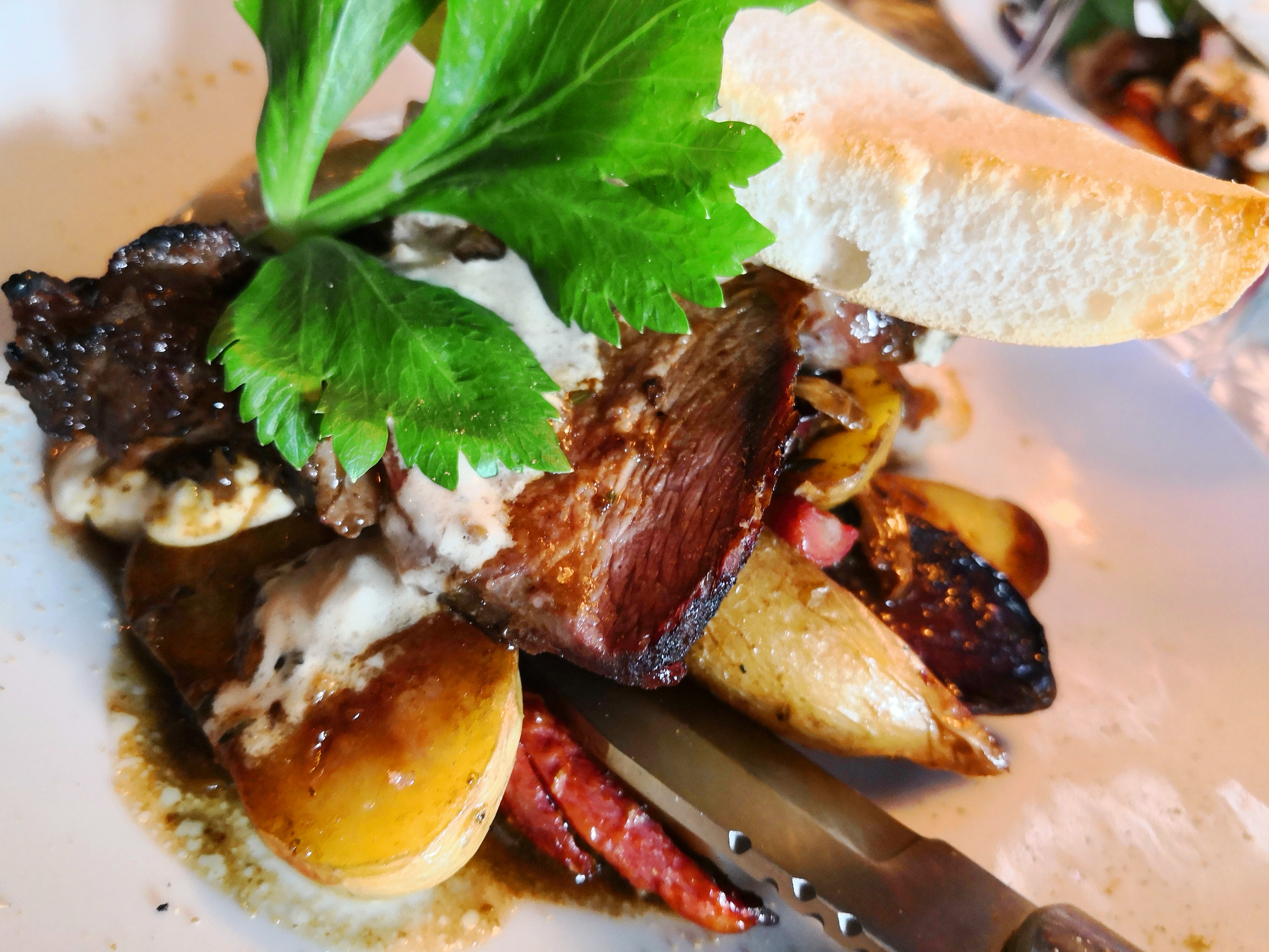C’est excellent, de l’entrée au dessert, jusqu’au vin. J’ai tout adoré, et les portions sont plus que copieuse. C’est parfait, et l’endroit est super beau le soir.