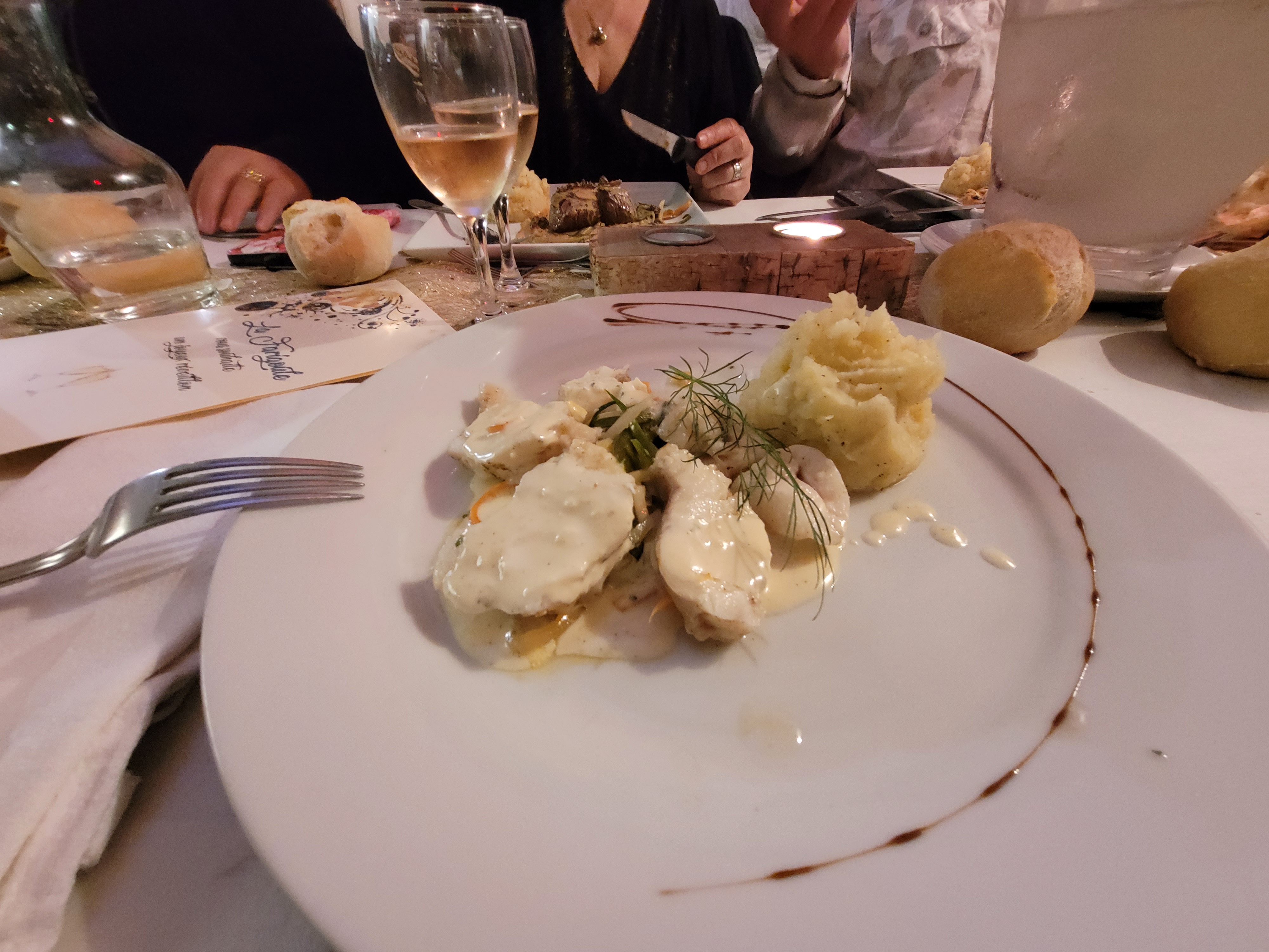 Un peu déçue par rapport à ce que nous attendions. Le repas n'était pas super . Entré vol au vent de poulet je pensais mieux ( trop gras ) les moules trop cuites. Pas de sel sur les frites ni à table . L'entrée de mon mari on aurais dit qu'il avait mis les restes de la semaine . Un morceau de quiche, tranche de rôti de bœuf, œuf, pâté, rillettes salade. On voulais du jambon cru on nous a un peu forcé à prendre les entrées proposées. Le dessert super un nougat glacé très bon . En résumé nous avons été déçus .