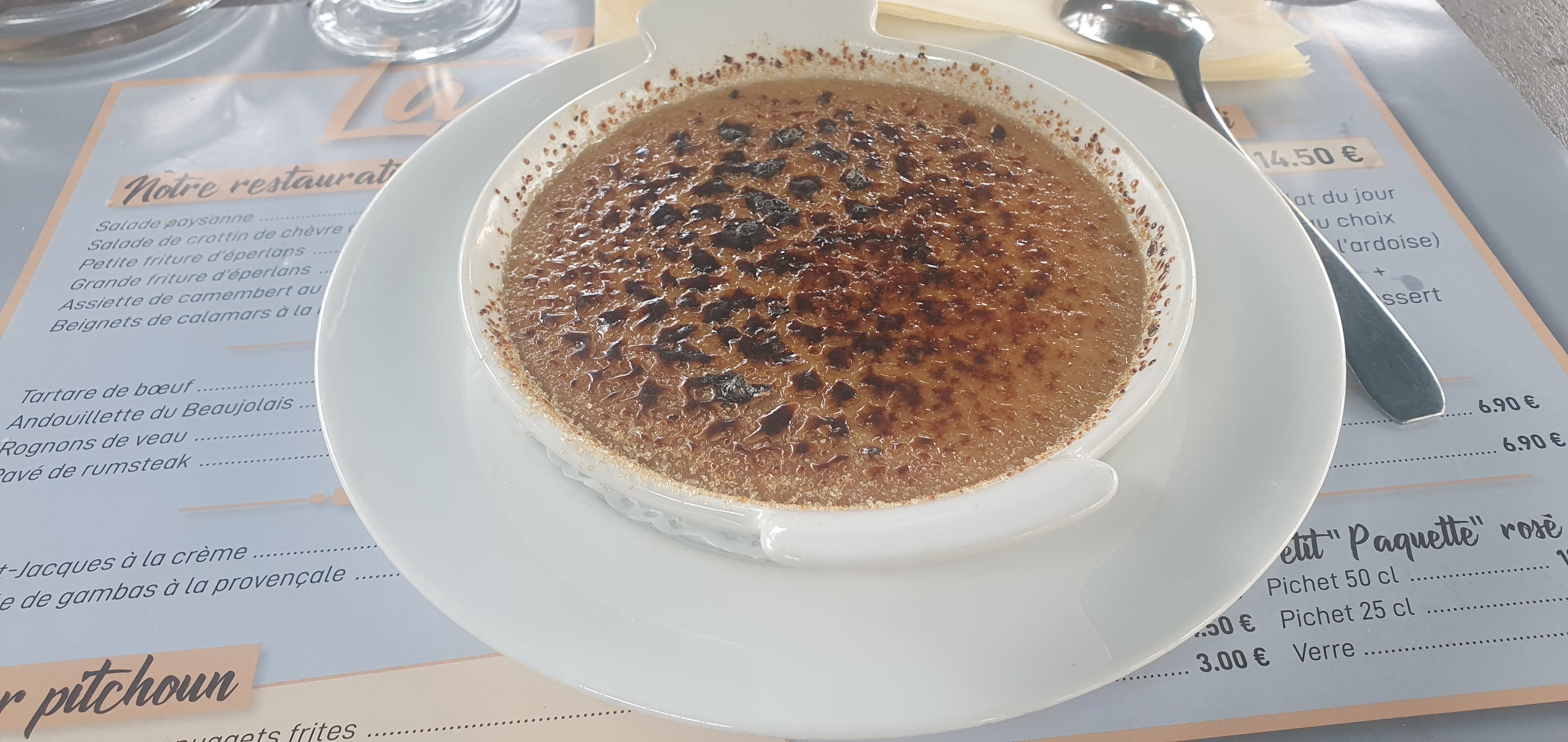1 très moyen malgré un personnel et le patron sympa des frites juste réchauffées limite froides le reste bof mais le dessert 👍