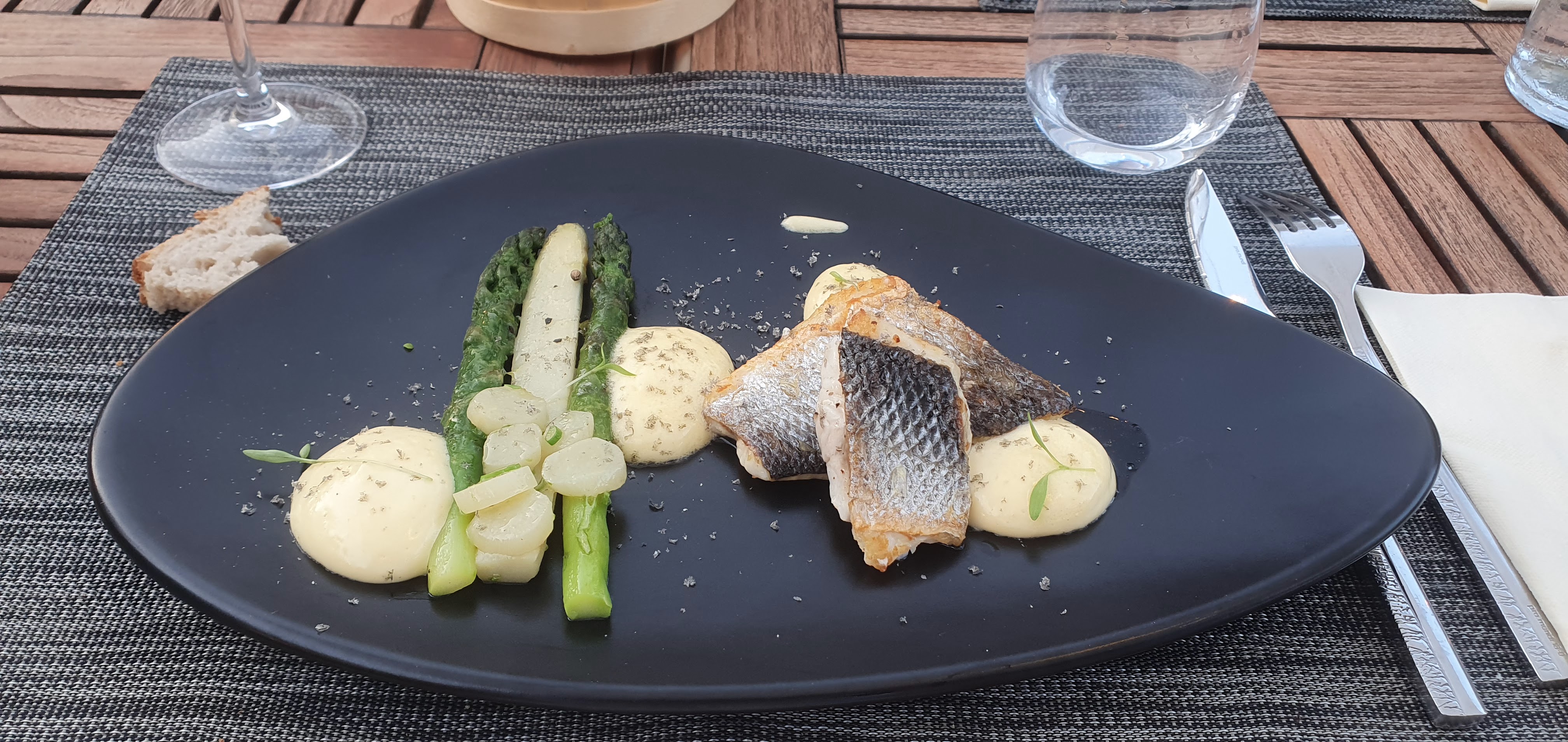 Les plats sont excellents, très bien présentés, savoureux. Il n’y a qu’un menu avec deux entrées imposées, le choix entre deux propositions du plat principal et du dessert, (avec en grandes partie des produits locaux). Cela permet de belles découvertes. Le service était long, mais les plats cuisinés à la minute l’explique certainement. La fin de saison doit aussi jouer sur l’amabilité du personnel, dommage que nous soyons tombés sur un mauvais jour.