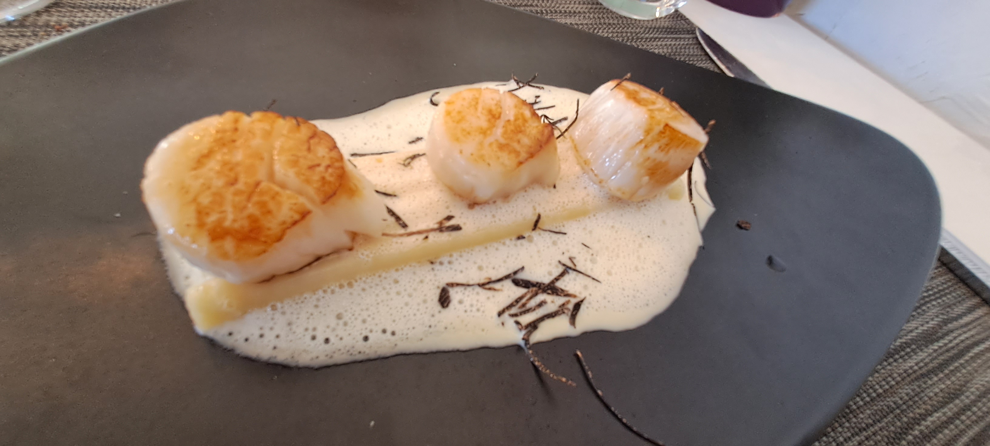 Menu dégustation, du bonheur pour les papilles ! Repas délicieux du début à la fin. Personnel accueillant et sympathique. Un cadre magnifique. Je vous le conseille.
