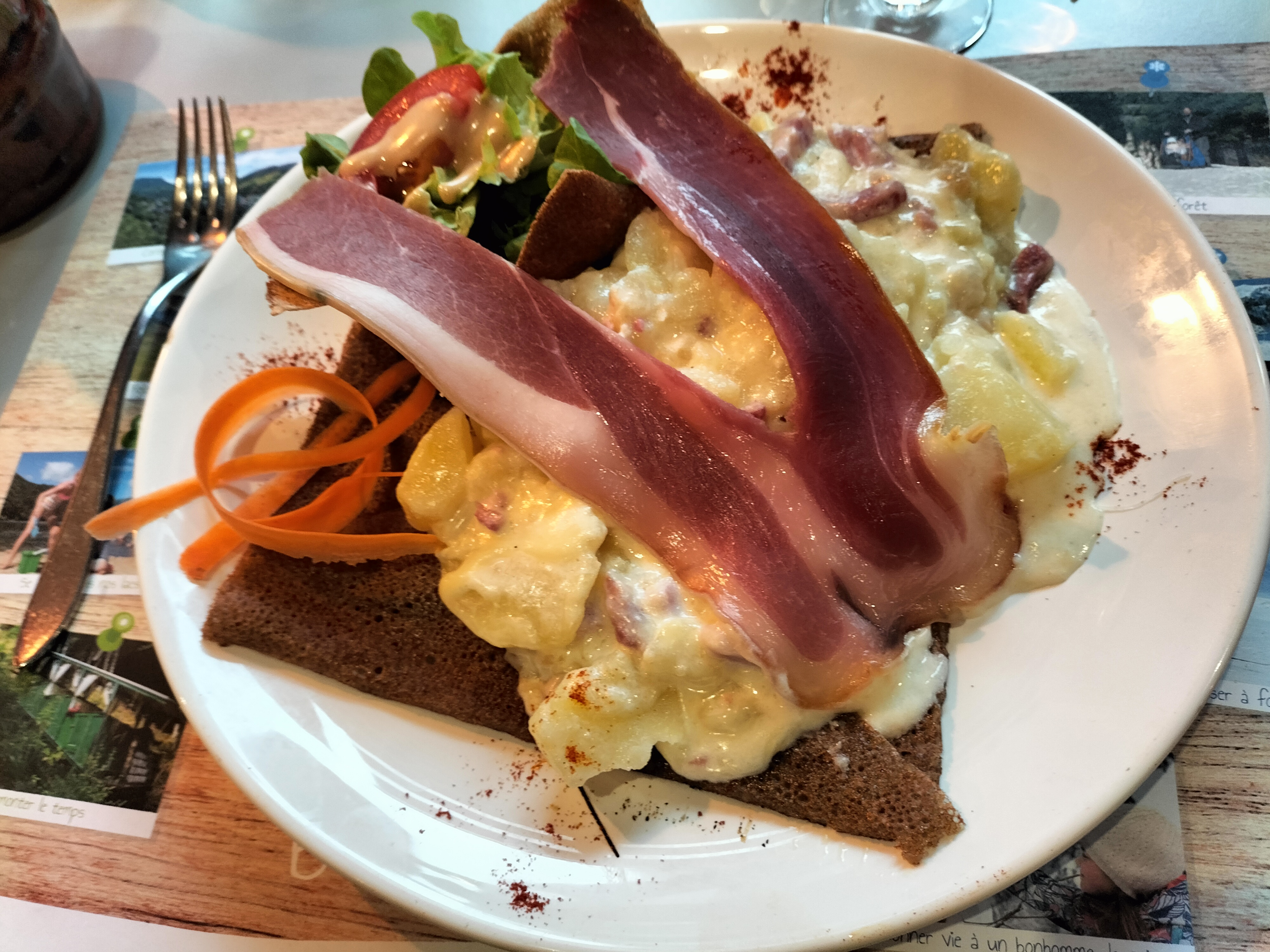 Un super accueil de la part de la serveuse ! Les plats sont corrects sans plus (galettes et truffades). La salade d’accompagnement est généreuse. Cependant, malgré le rhume arrangé offert, les prix me semblent un peu élevés.