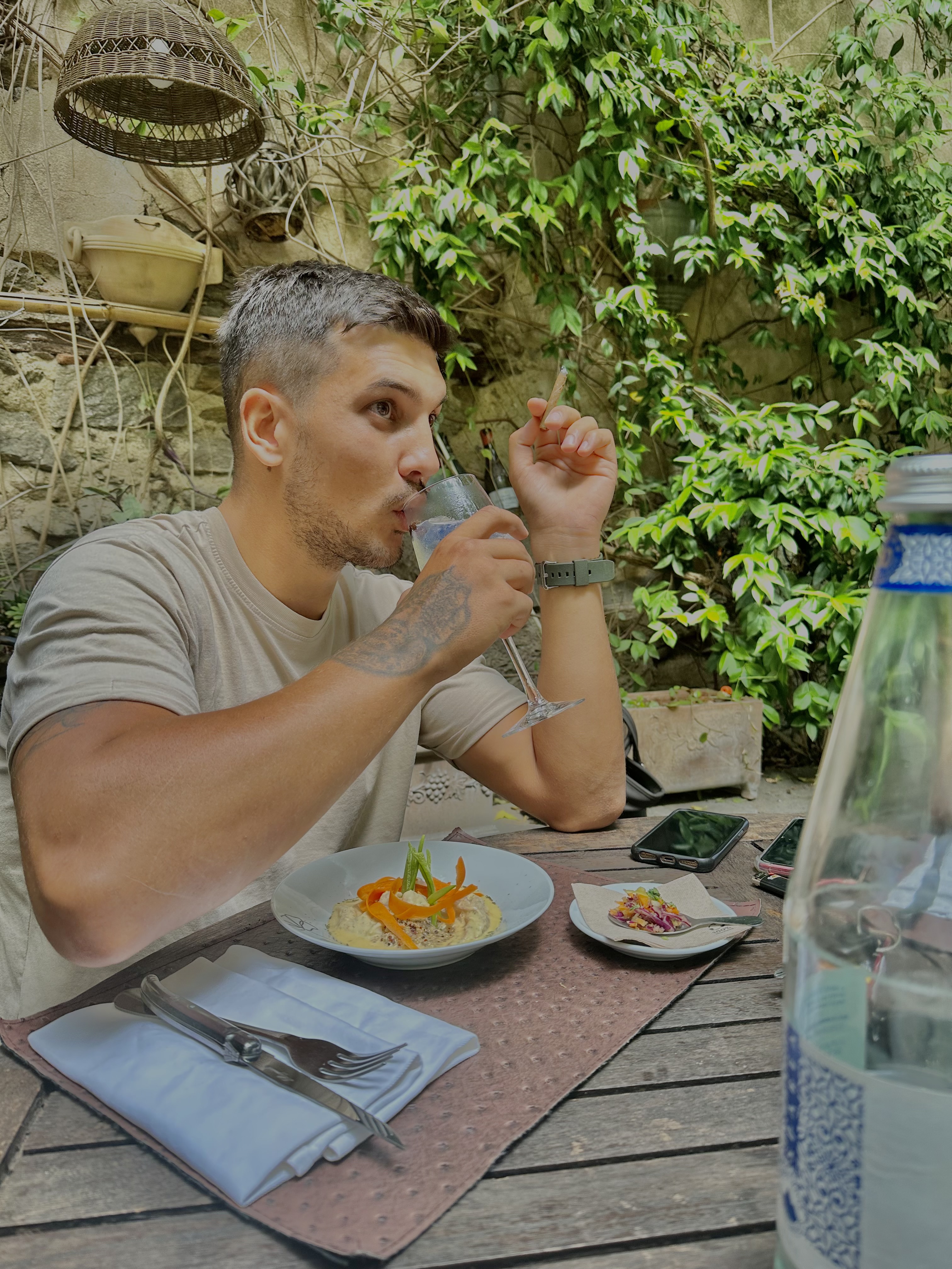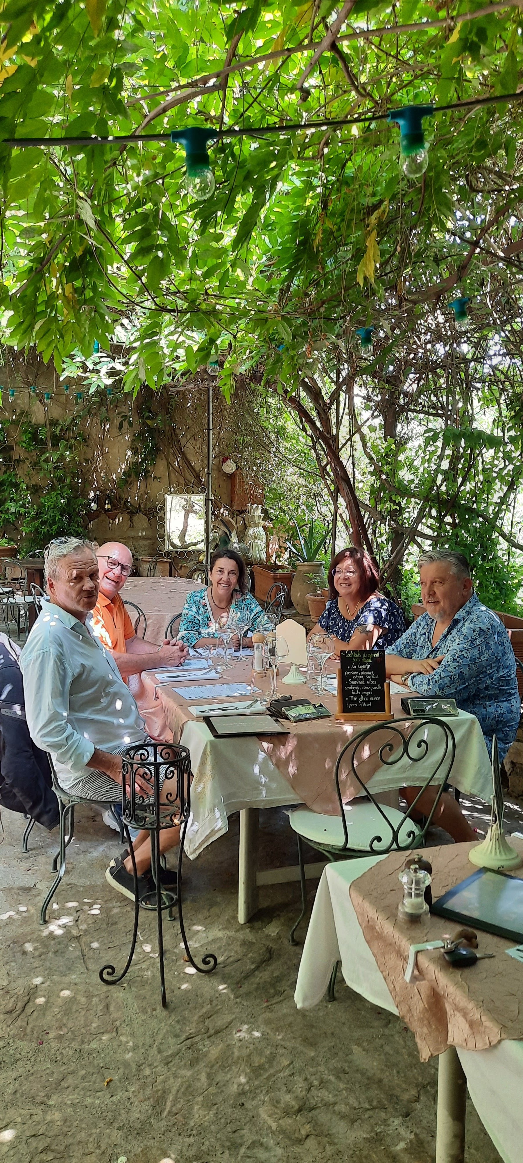 l accueil chaleureux par le maitre des lieux qui nous a place dans le jardin pour y deguster cet aiolli bien achalende..et ces cotes de provence de la region.
