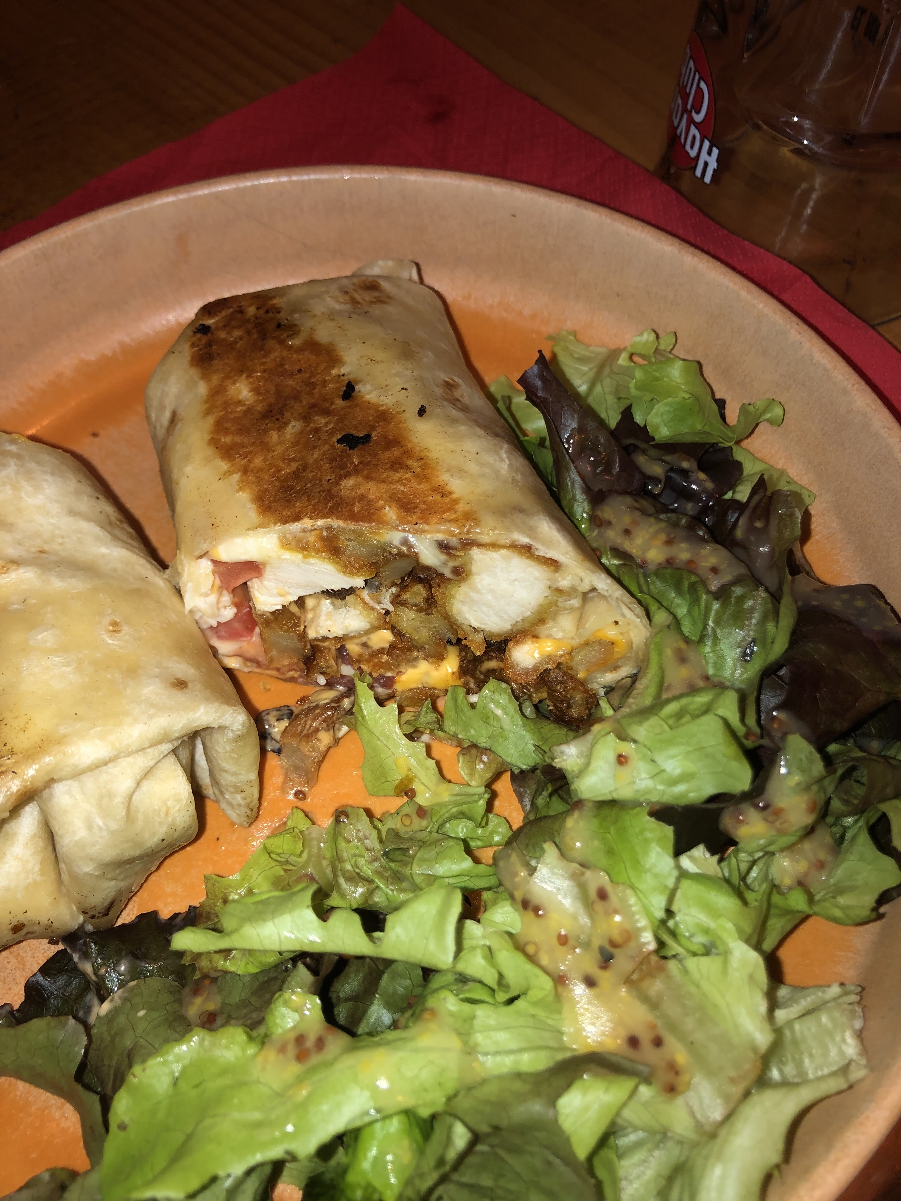 Un restaurant qui est probablement plus connu pour ses fêtes et ses animations que pour sa nourriture. Table collante. Probablement dû à de précédents événements remplis d'alcooliques. La nourriture a mis beaucoup de temps à être servie. Le Mexican Burger était assez fade, le pain avait un goût très ordinaire et cela a plutôt ruiné la qualité du burger. Les ingrédients étaient d'ailleurs de moindre qualité. Le burrito au poulet, quant à lui, était meilleur et légèrement plus savoureux que les quesadillas au poulet. En effet, celles-ci étaient fades. Elles manquaient de saveur et étaient mal présentées.