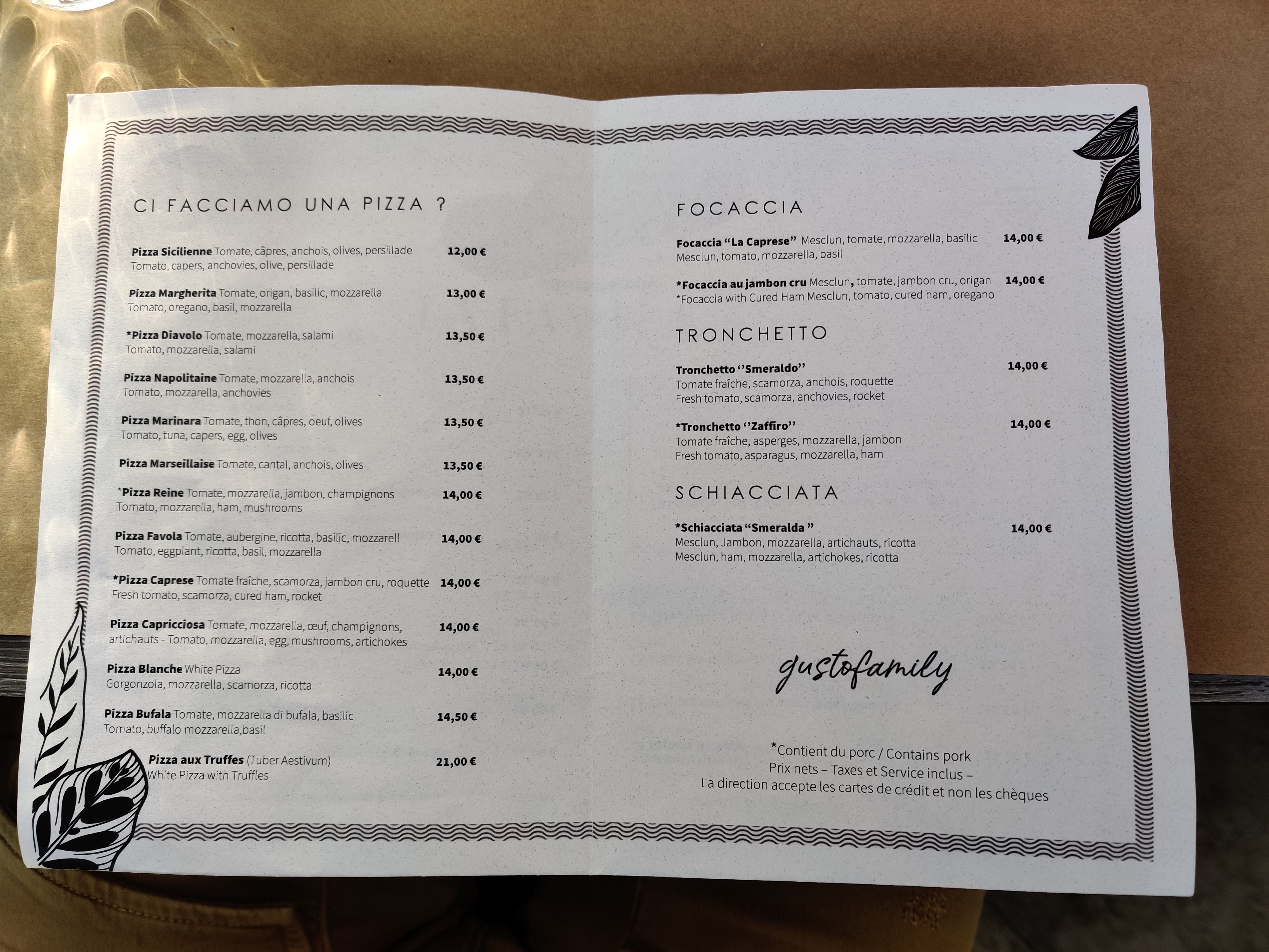 Tout est au top, du service à l’assiette. Très bon rapport qualité prix, nous sommes venus pour le semi marathon de Nice, à la recherche d’un restaurant italien. La première fois c’était des pâtes, très bonnes et copieuses. Puis avant de partir il fallait tester leurs pizzas, un régal.