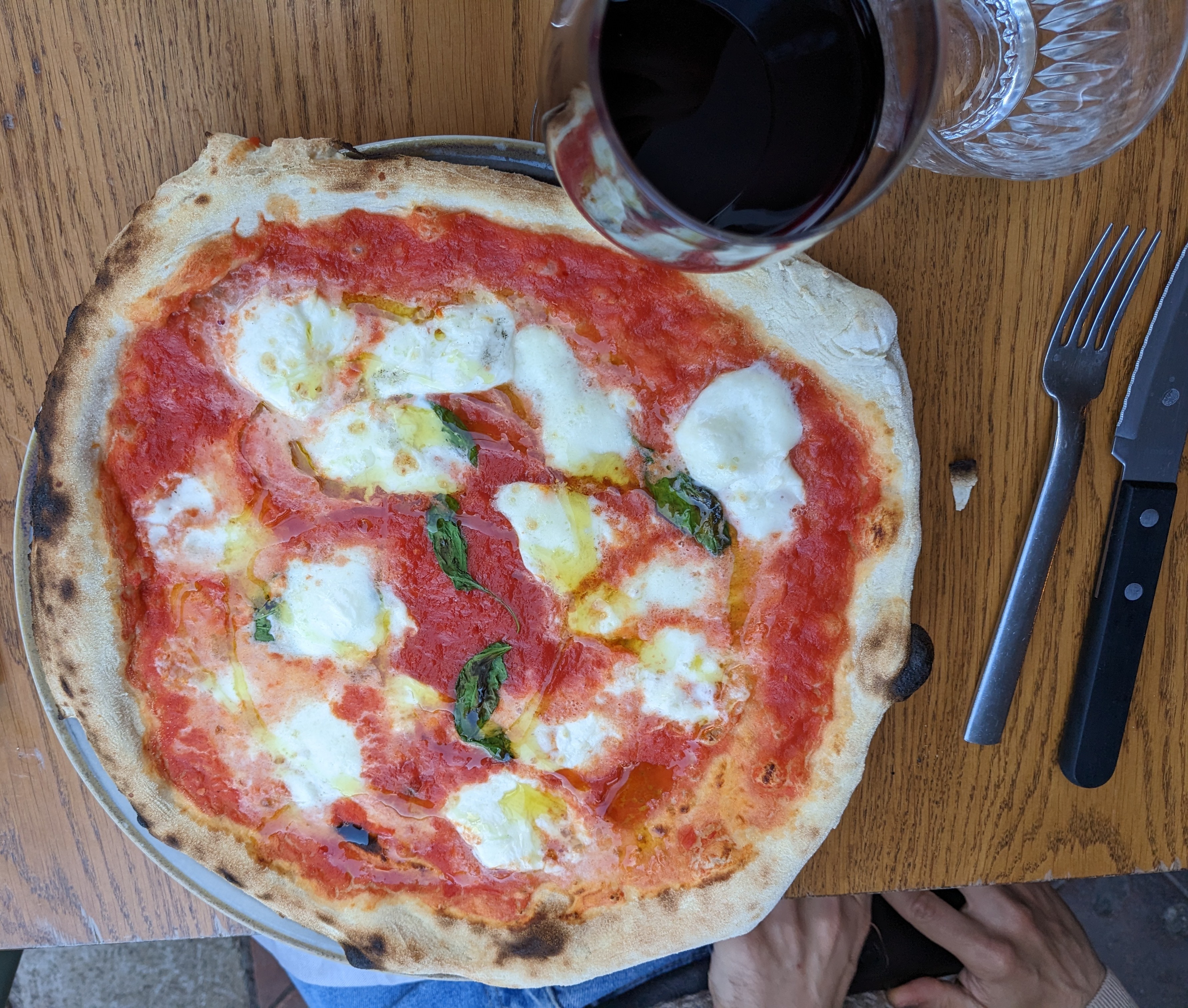Très belle expérience dans ce restaurant niçois. Une décoration chaleureuse et un accueil qui l’est tout autant. J’ai opté pour la pizza caprese et le solide nero davola, très satisfait de mon choix. Petite pensée positive sur la possibilité de doggybag, c’est toujours agréable de voir que les restaurants commencent réellement à faire des efforts pour le gaspillage. Seul bémol serait l’attente car je n’avais pas réservé, mais c’est le prix à payer pour un restaurant victime de son succès. Pressez vous d’y aller, je pense que l’été, il doit être bon d’y manger