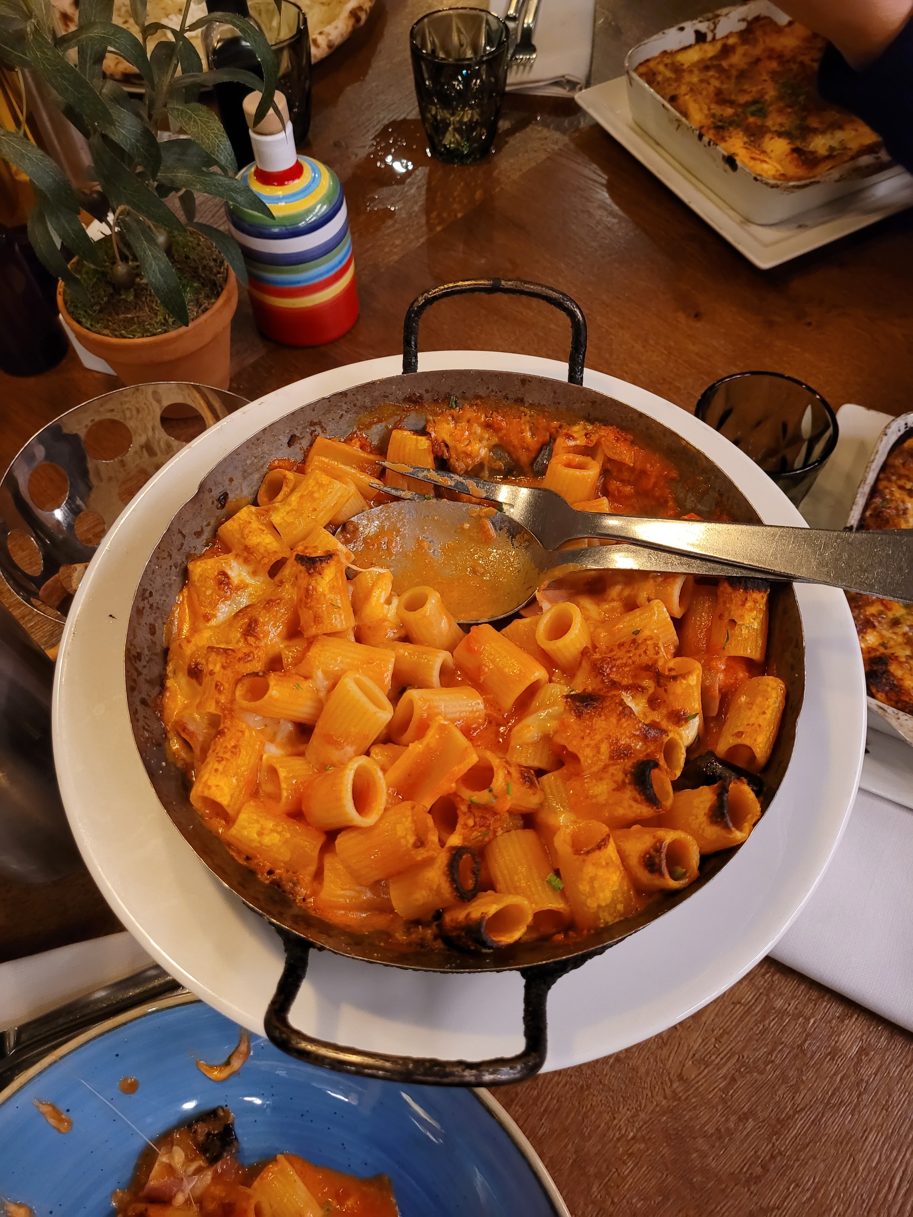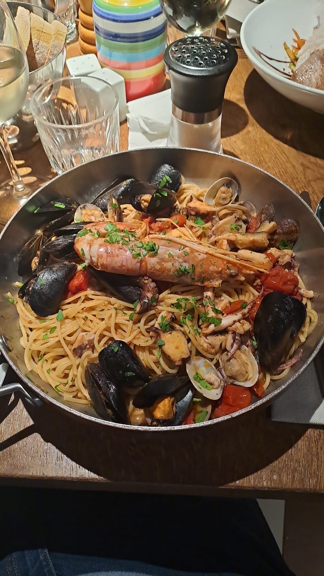 Un magnifique restaurant, un service d'une très grande qualité avec un personnel super gentil et serviable Quant aux repas, nous avons pris des pâtes....mais quels pâtes !!!! Excellentes, un grand choix servi dans la casserole....original du coup et ultra copieux, impossible de terminer. Je précise que la casserole est pour 2. Pour ma part j'ai pris des gnocchis aux gambas 👍👍 Bref, super pour pâtes, pizzas etc....