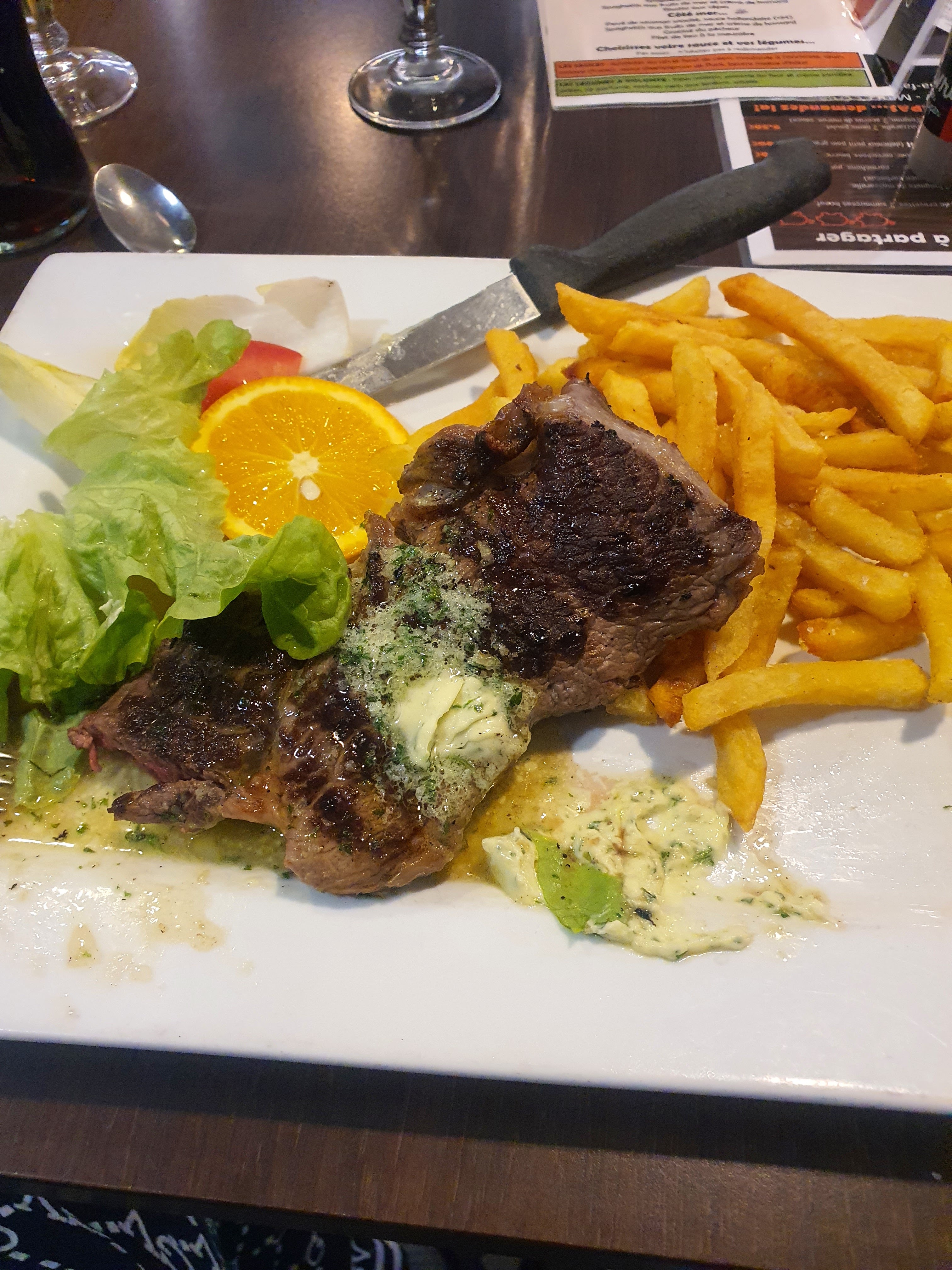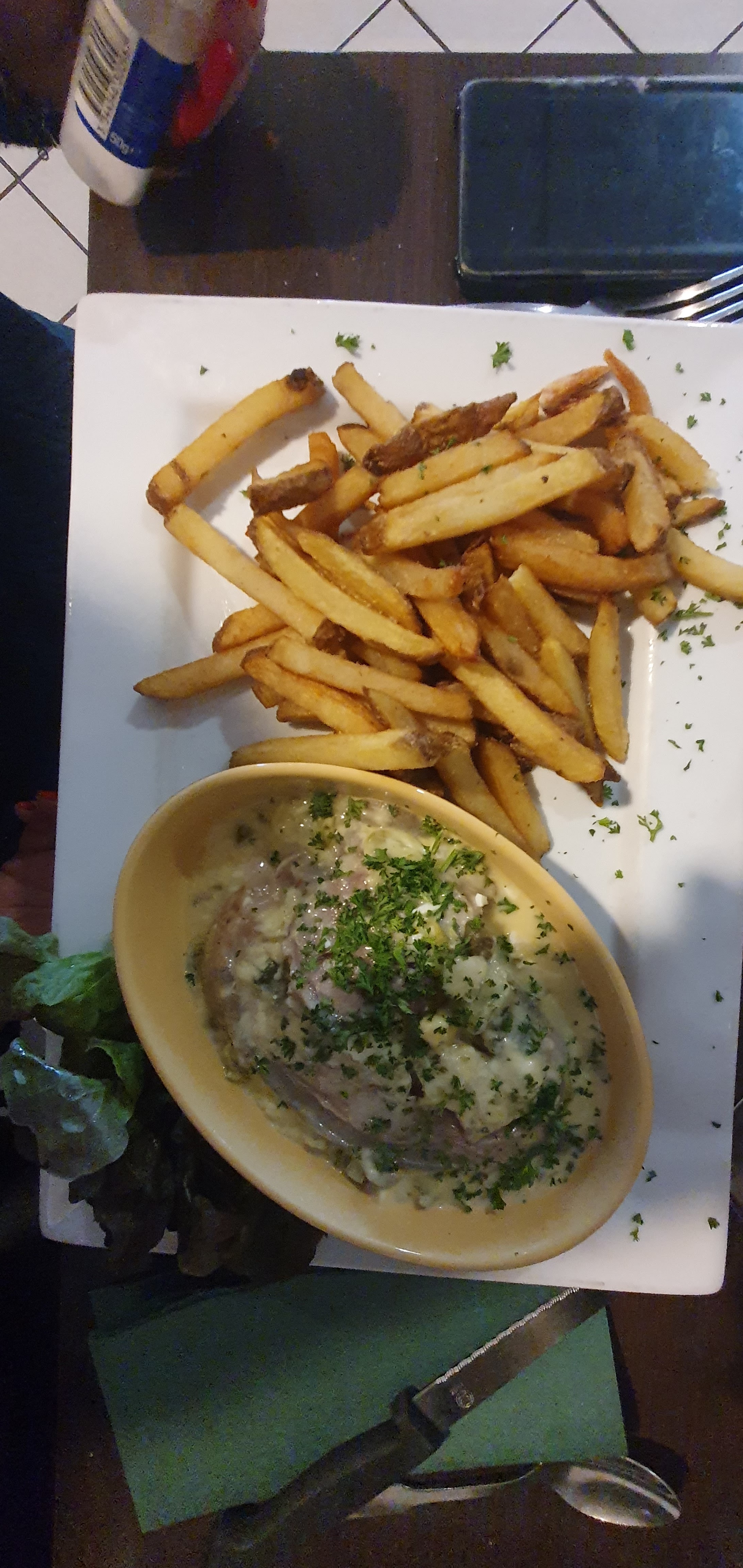Cuisine a revoir ou cuisinié a changé. Pensé a nettoyé avant de faire cuire le steack haché. Ainsi que changé l'huile de la friteuse. Gratin pomme de terre pas cuite. Assez décevant dans l'ensemble.