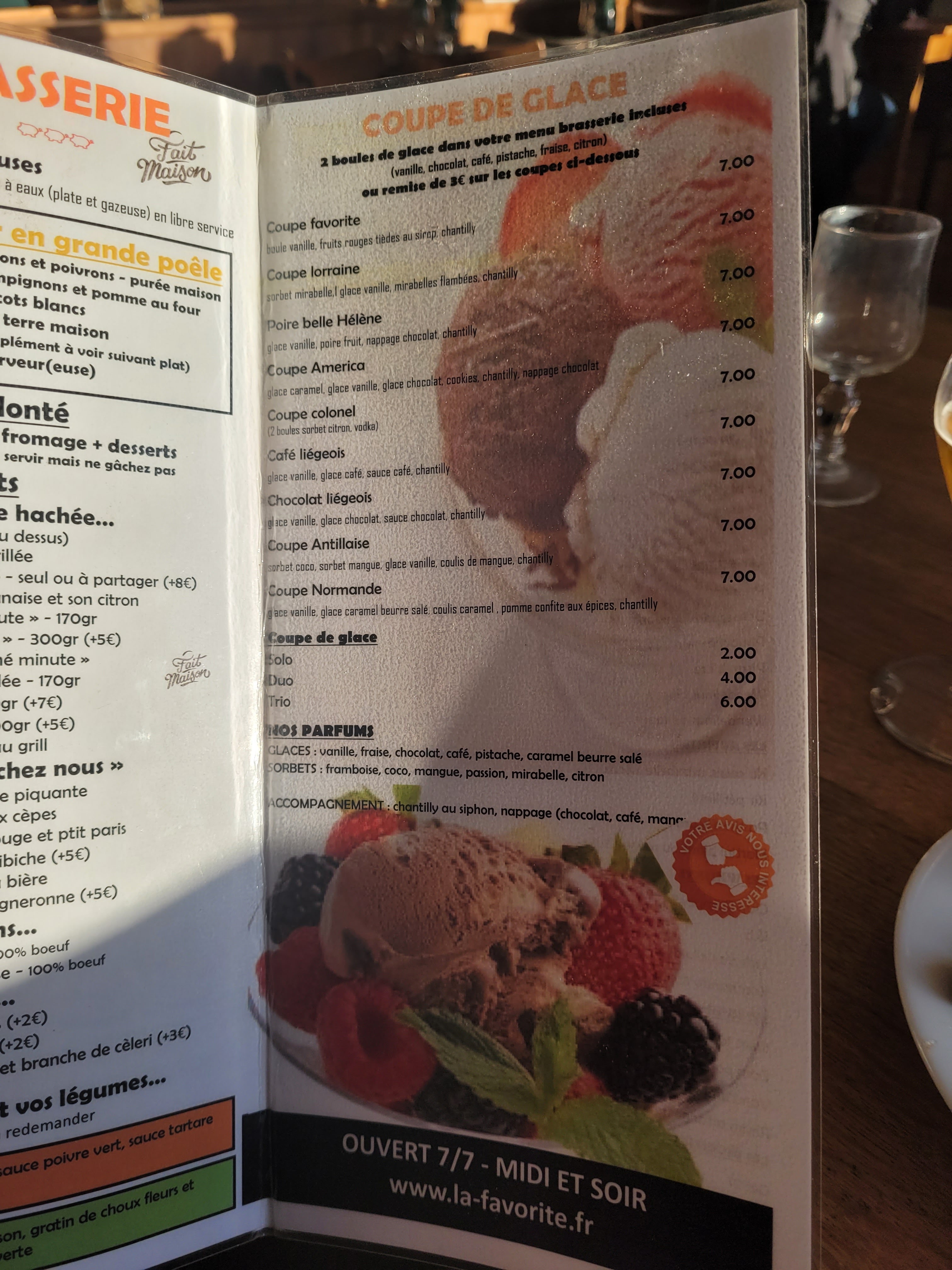Grande satisfaction, la dame du matin très agréable et de bon conseil. Pas déçu contrairement aux autres avis que je ne comprends pas, soit les gens deviennent exigeants ou je n'ai pas compris. Le dialogue est la clé du succès de la relation humaine. Et 16.70 pour entrée plat fromage dessert et boisson il faut être au goût du jour, je trouve ce service très correct. Merci La Favorite. Philippe