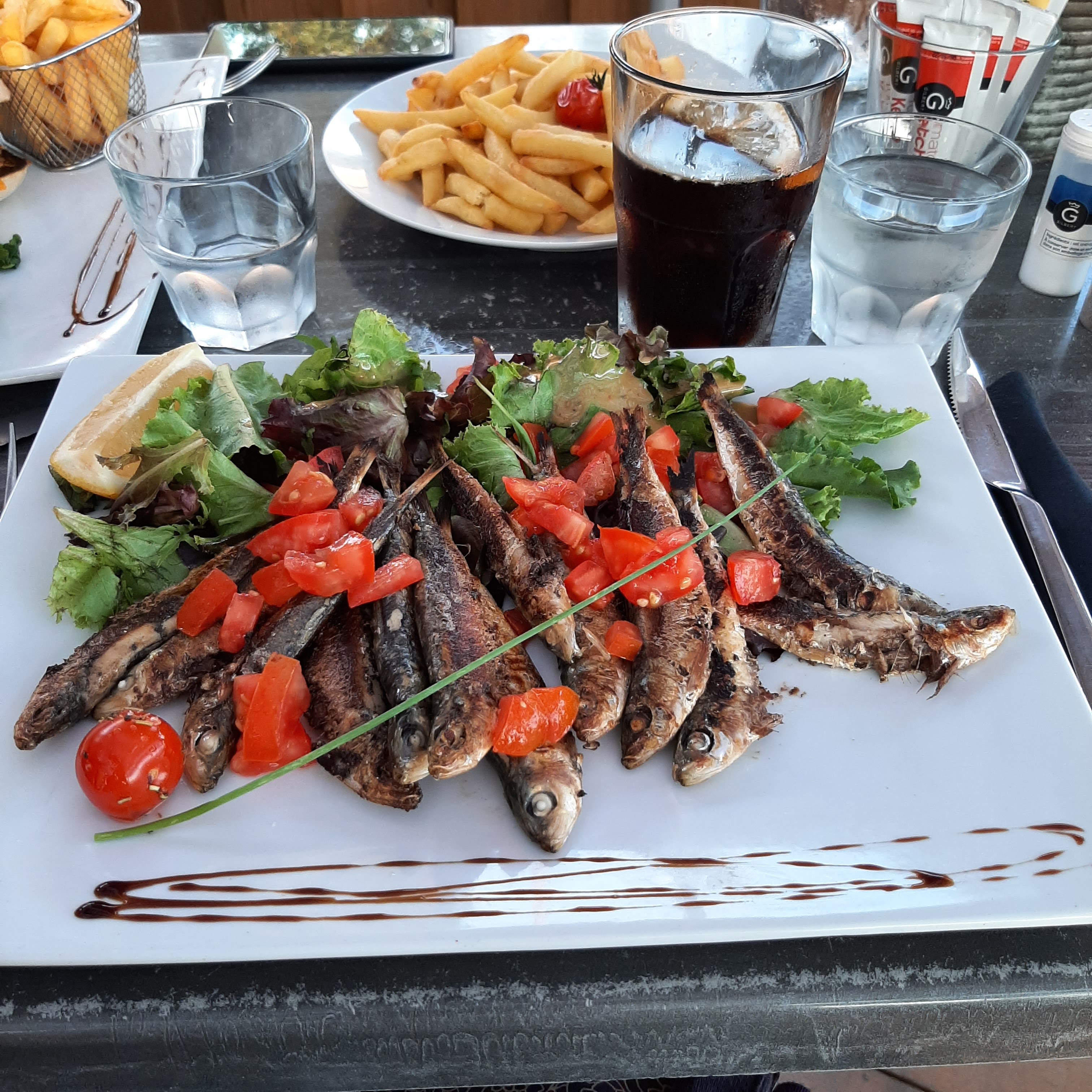 Resto bord de mer dans le cadre ESTÉREL MAGNIFIQUE Service décontracté sardines grillées ou calmar plancha bien cuits Resto simple sympa sans Chichi prix correct pour la Côte te