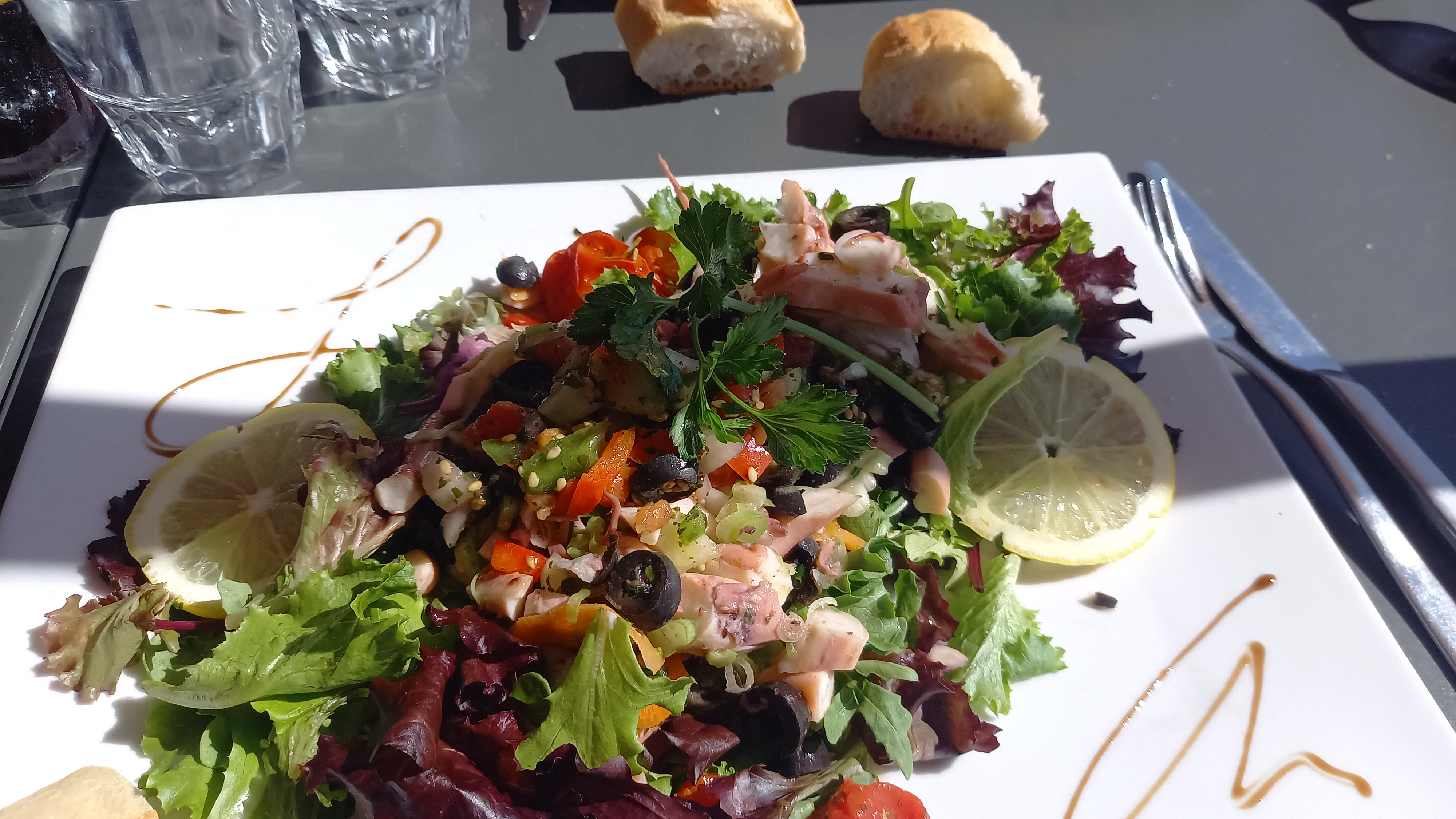 Cadre idéal ! Nourriture fraîche et bien préparée service efficace et agréable