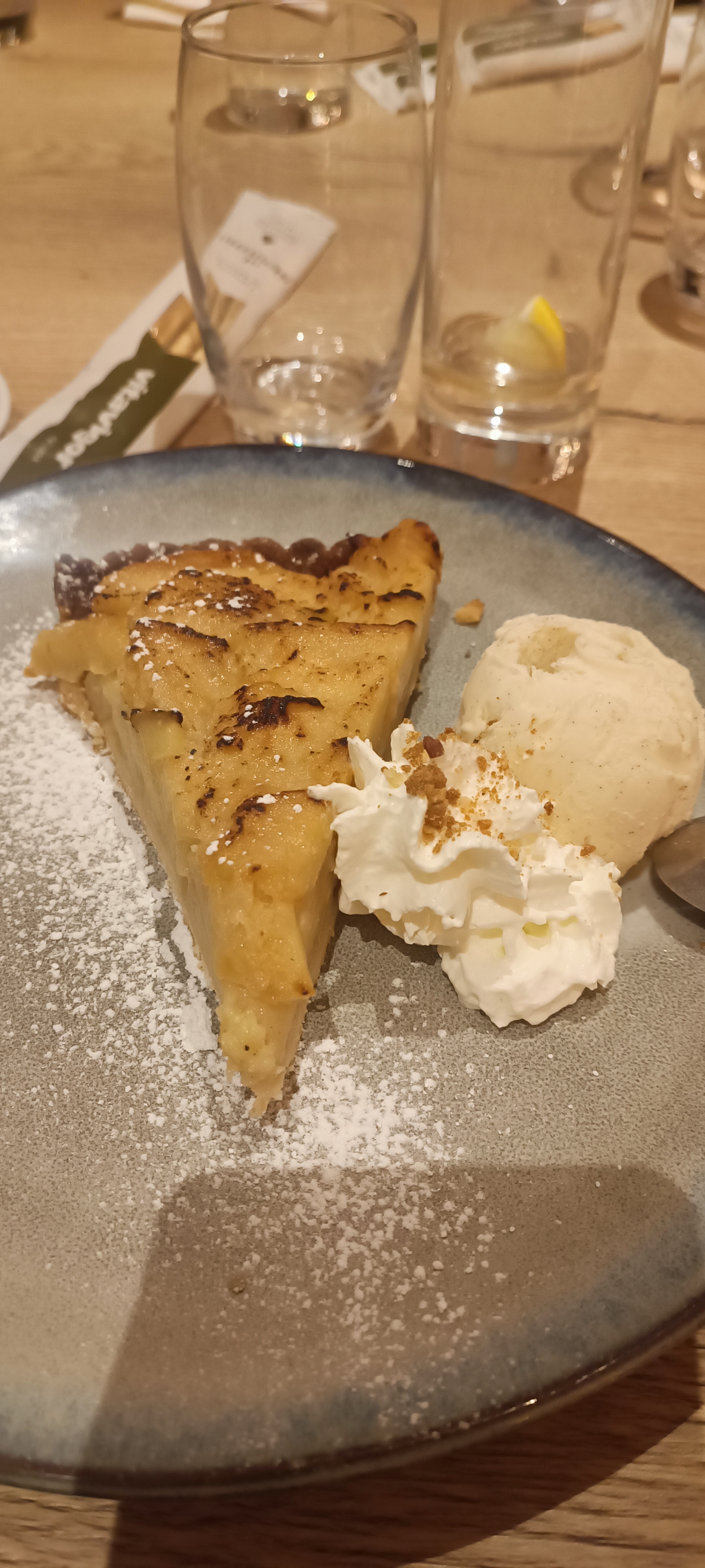 Je ne m'y attendais pas forcément de l'extérieur mais l'intérieur est vraiment très sympa. Déco soignée, ambiance intime, très joli et agréable. La cuisine est très bonne. Je ne me plains pas mais les assiettes sont énormes et c'est difficile de tout finir. Vu la quantité, c'est un bon rapport qualité/prix. Personnellement j'aurai préféré un peu moins dans l'assiette et du coup baisser un peu le prix et surtout un peu moins dans l'assiette pour pouvoir tester les desserts qui donnent vraiment envie 😉. Hâte de découvrir les pizzas. Le service par les 2 messieurs était très bien et efficace.