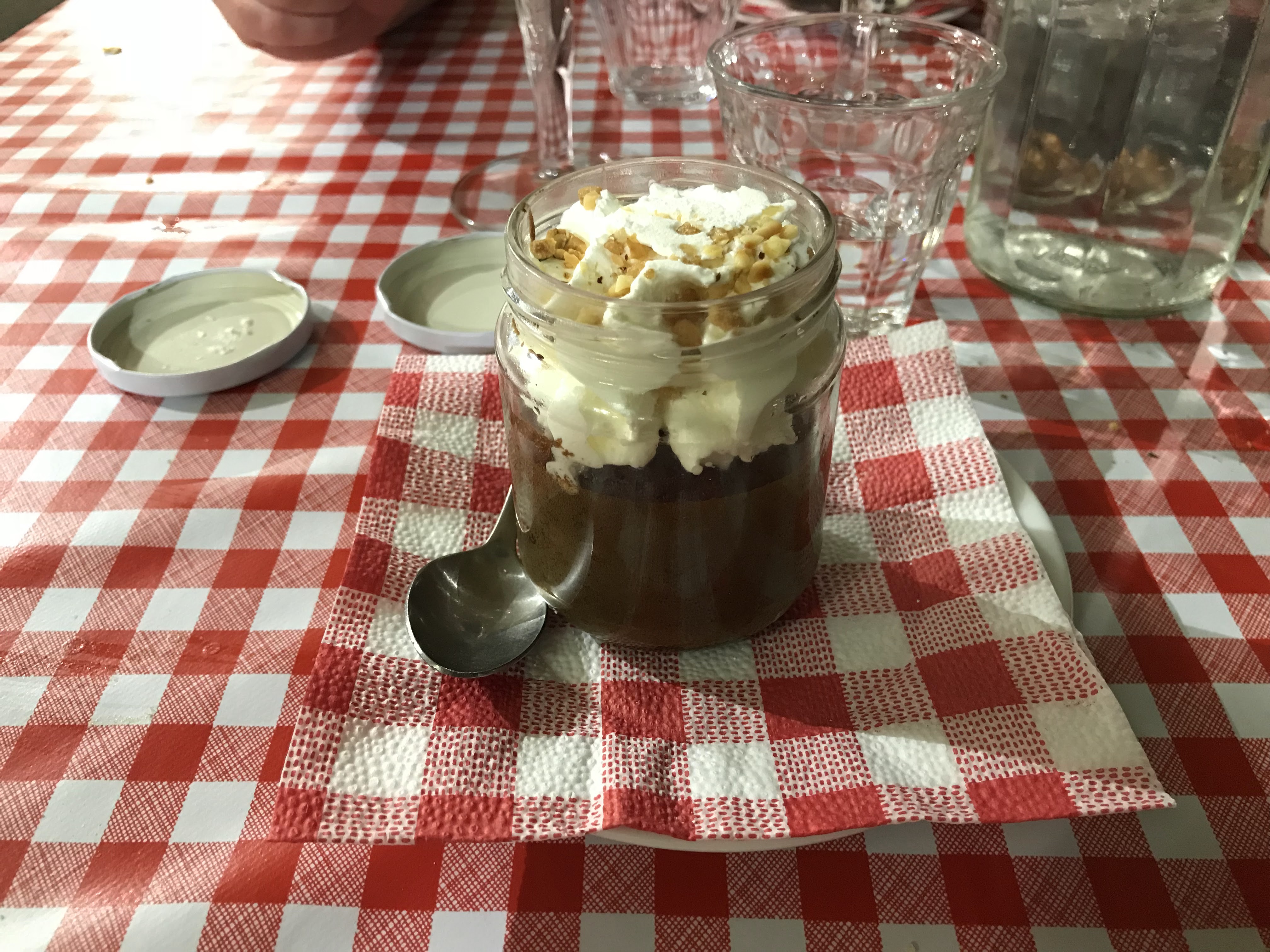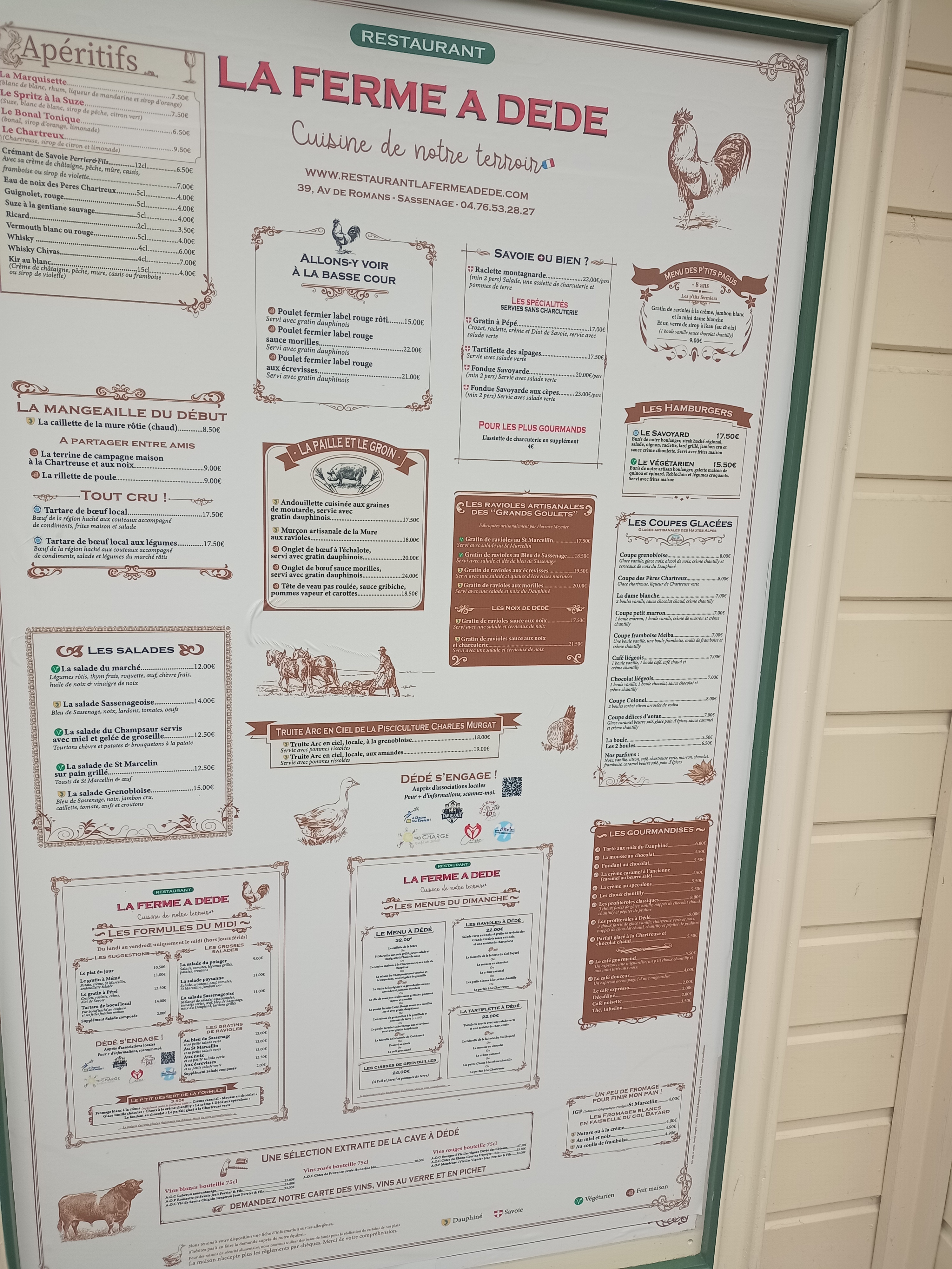 Au hasard et…un peu desperé, en quête d’un restaurant sans prétention pour dîner, on a découvert la ferme à Dédé. Moment agréable passé en terrasse: nappe à carreaux etc