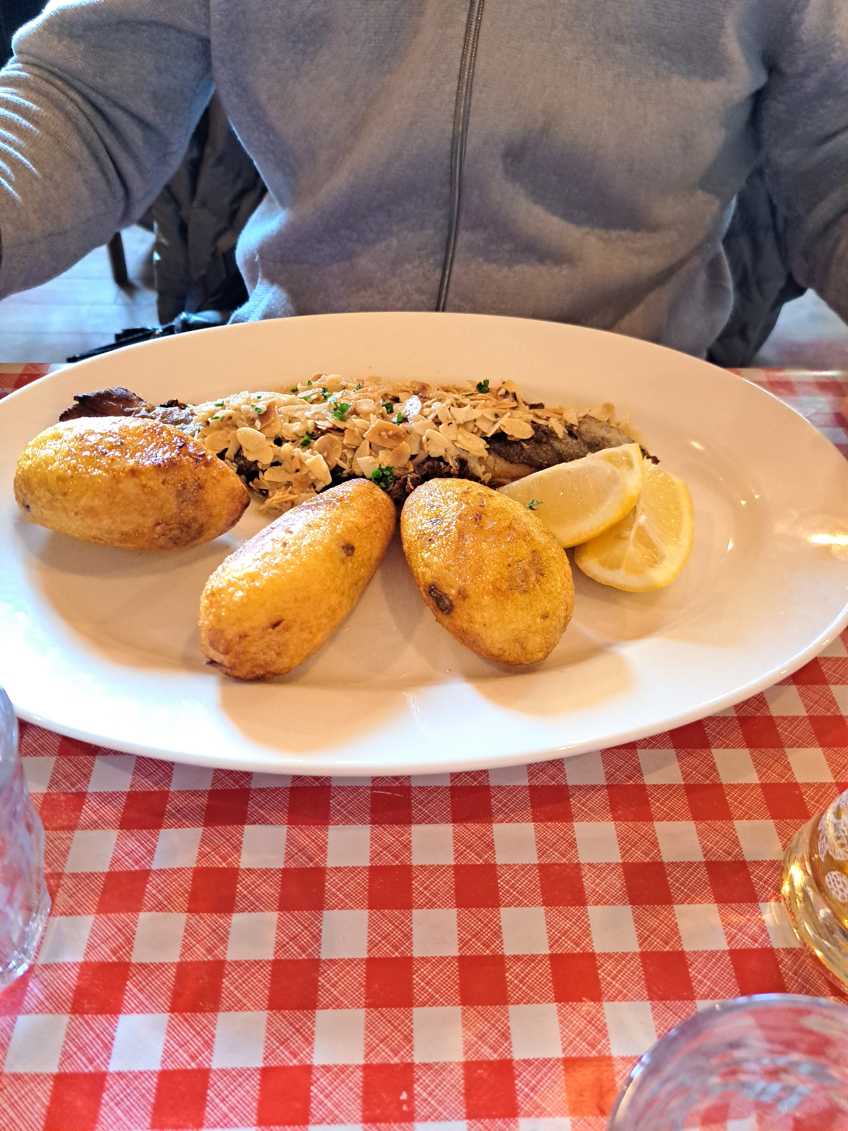 Gratin de ravioles aux écrevisses une merveille Truite aux amandes peut-être un peu trop d'amandes mais le poisson excellent On reviendra pour d'autres dégustations
