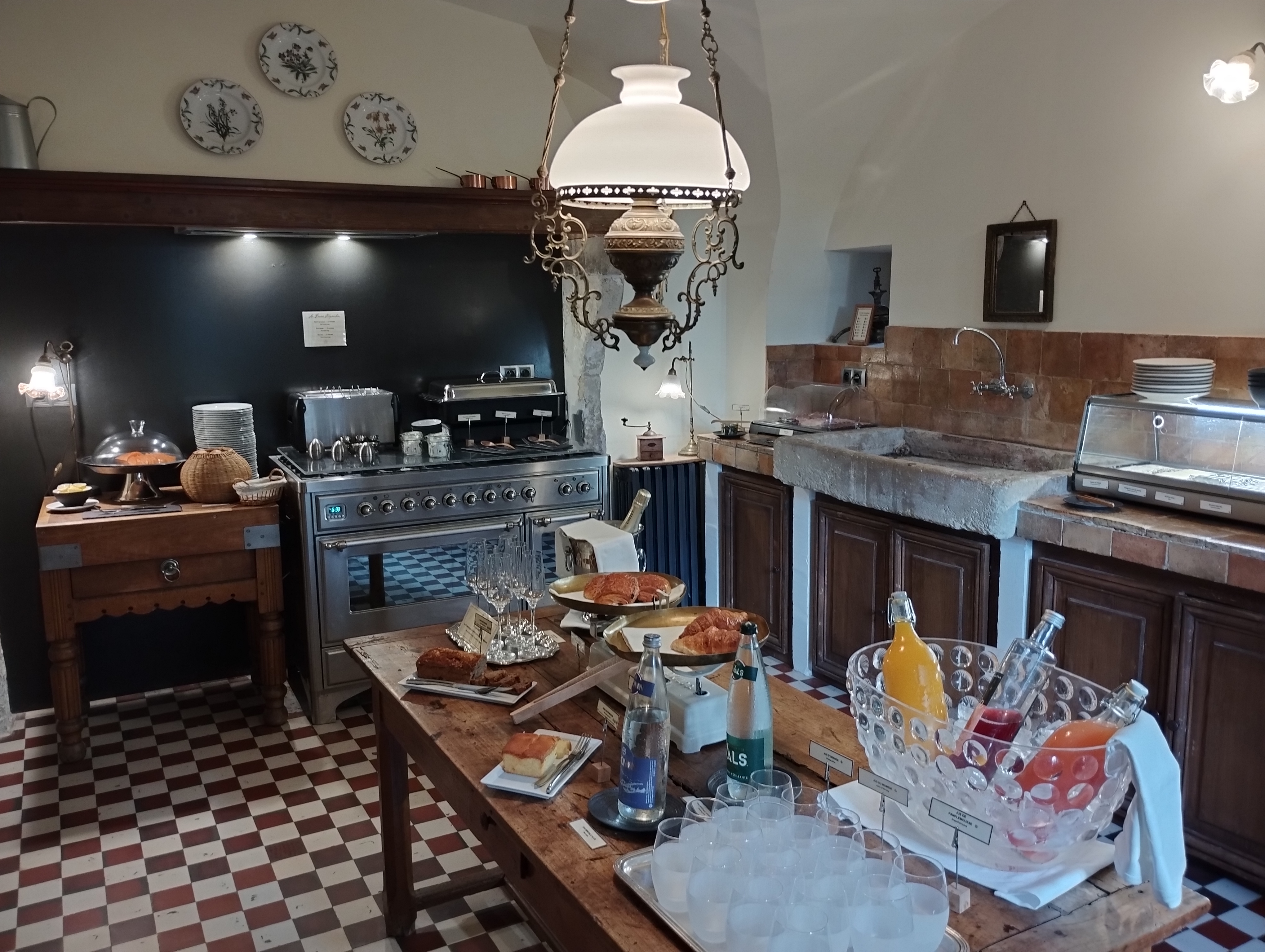 Déjeuner du nouvel an Surprise buffet style club med en moins bien Déception totale Foie gras sans chutney ou confiture de figues non accompagné, pas de pain grillé ou brioche ou pain d’épice Saumon pas de sauce à l’aneth ou de citron ou blinis tiède pas d’accompagnement Œufs brouillés pas de truffe Pas de dessert comme d’habitude des gâteaux individuels Le vin le plus ordinaire d’un producteur voisin qui a de bien meilleurs crû Intervention je ne nomme pas car ce ne serait pas correct
