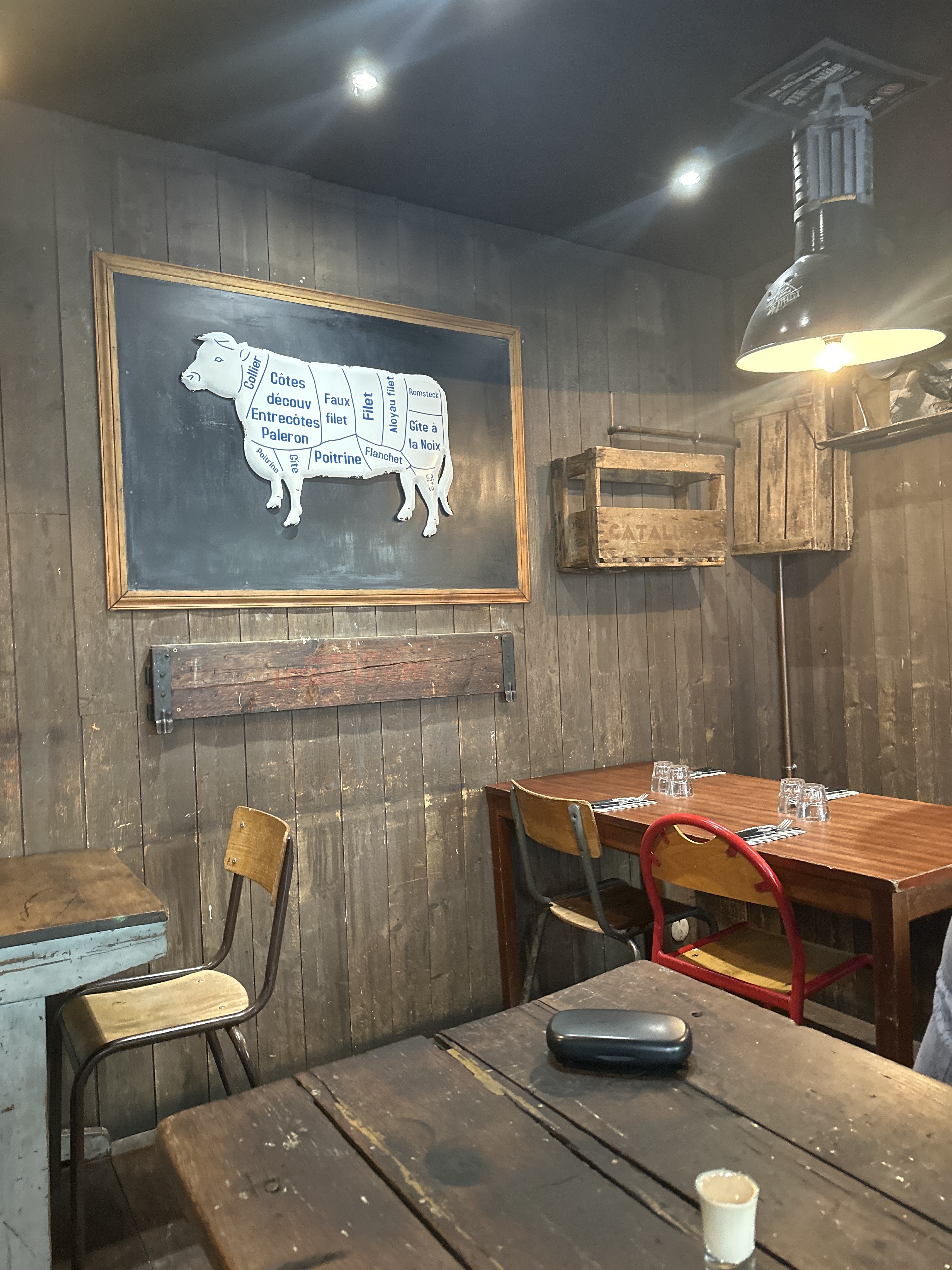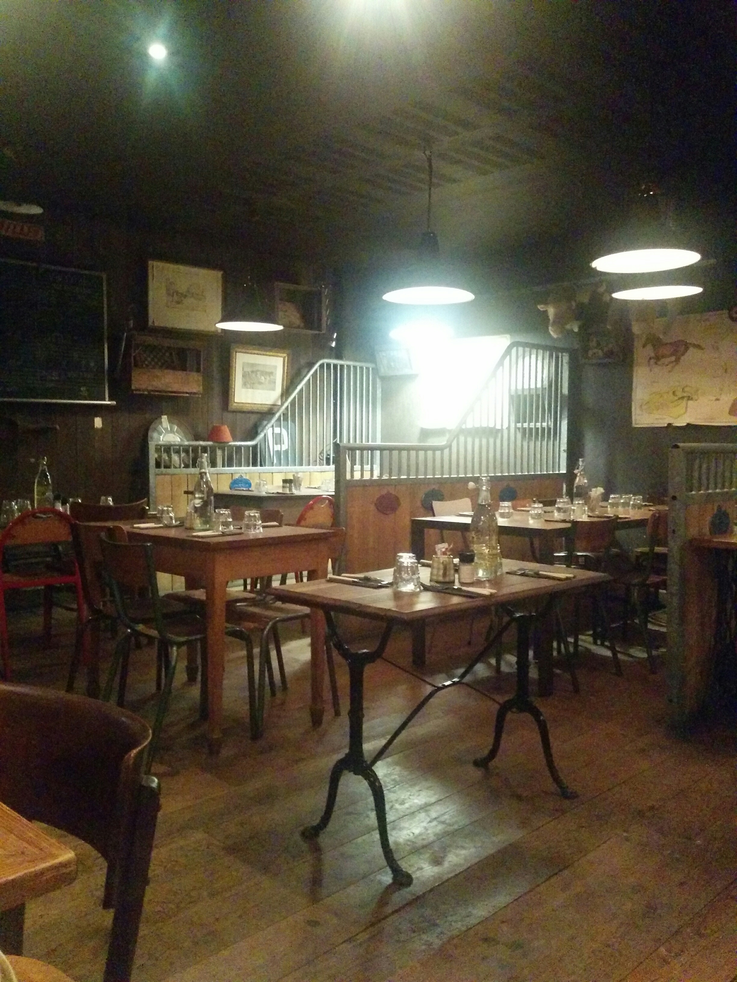 Le cadre est vraiment GÉNIAL. Les serveurs sont super sympas! Ça vaut le coup d'y venir pour les burgers ou les pieces de viande. Portions généreuses et de bonne qualité. Par contre, énorme déception sur les coquillettes... sans crème et avec très peu d'épinards.. On les fait mieux chez nous ! Les salades sont pas mal, assez bien garnies et variées. Le vin est bon par contre, c'est quand même un gros plus !! Et le pot de bonbons pour faire passer l'addition, on aime aussi !!!