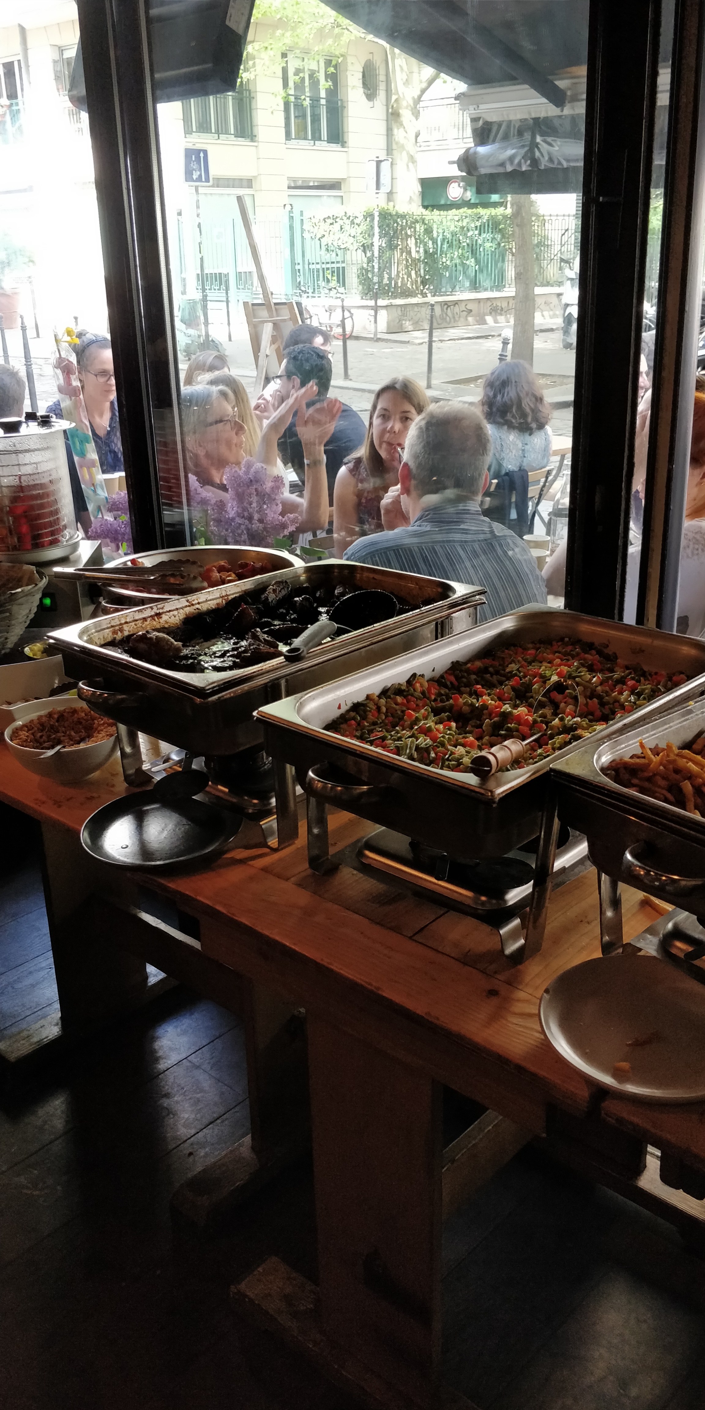 Attention brunch gargantuesque Depuis l'énorme pièce de boucher en passant par du poulet tajine et fruits de mer pour la partie salée, ou encore bonbons, gâteaux et viennoiseries pour le sucré, votre appétit sera satisfait ! Et que des bonnes boissons végétales ou laitières à volonté! Brunch le WE à 25€ - pensez à réserver !