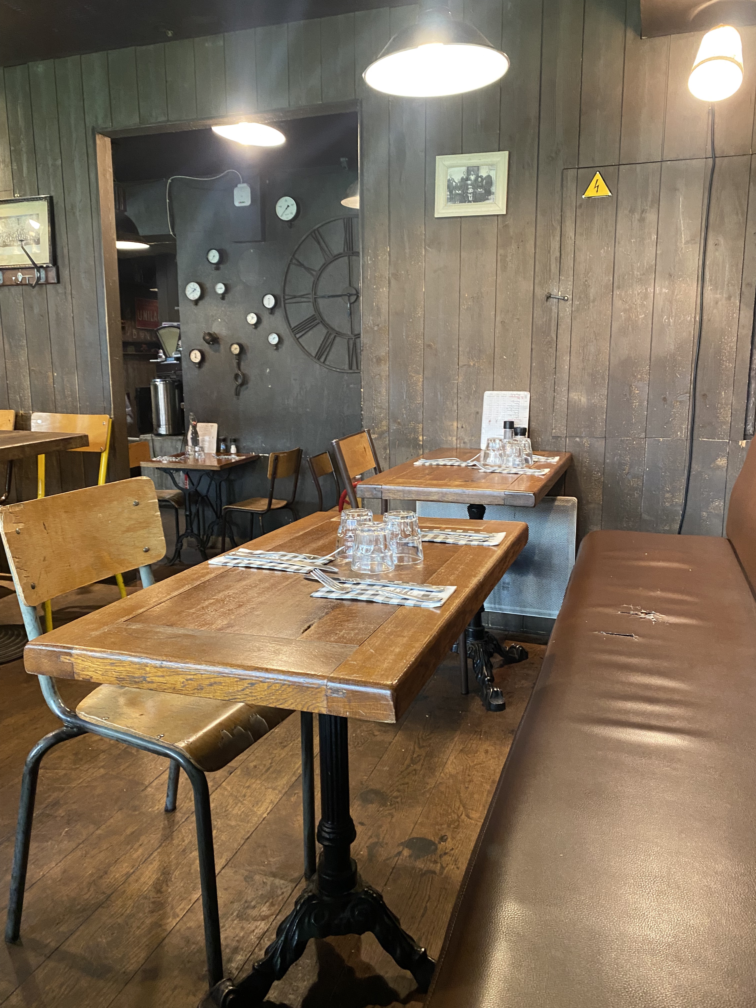 Bon plat du jour mais pas assez chaud une fois sur la table. Mauvaise expérience avec un hamburger dont la viande était crue à l'intérieur est cramée en surface. Un mauvais jour en cuisine ? Ceci dit, le cadre est original et le service plutôt sympa