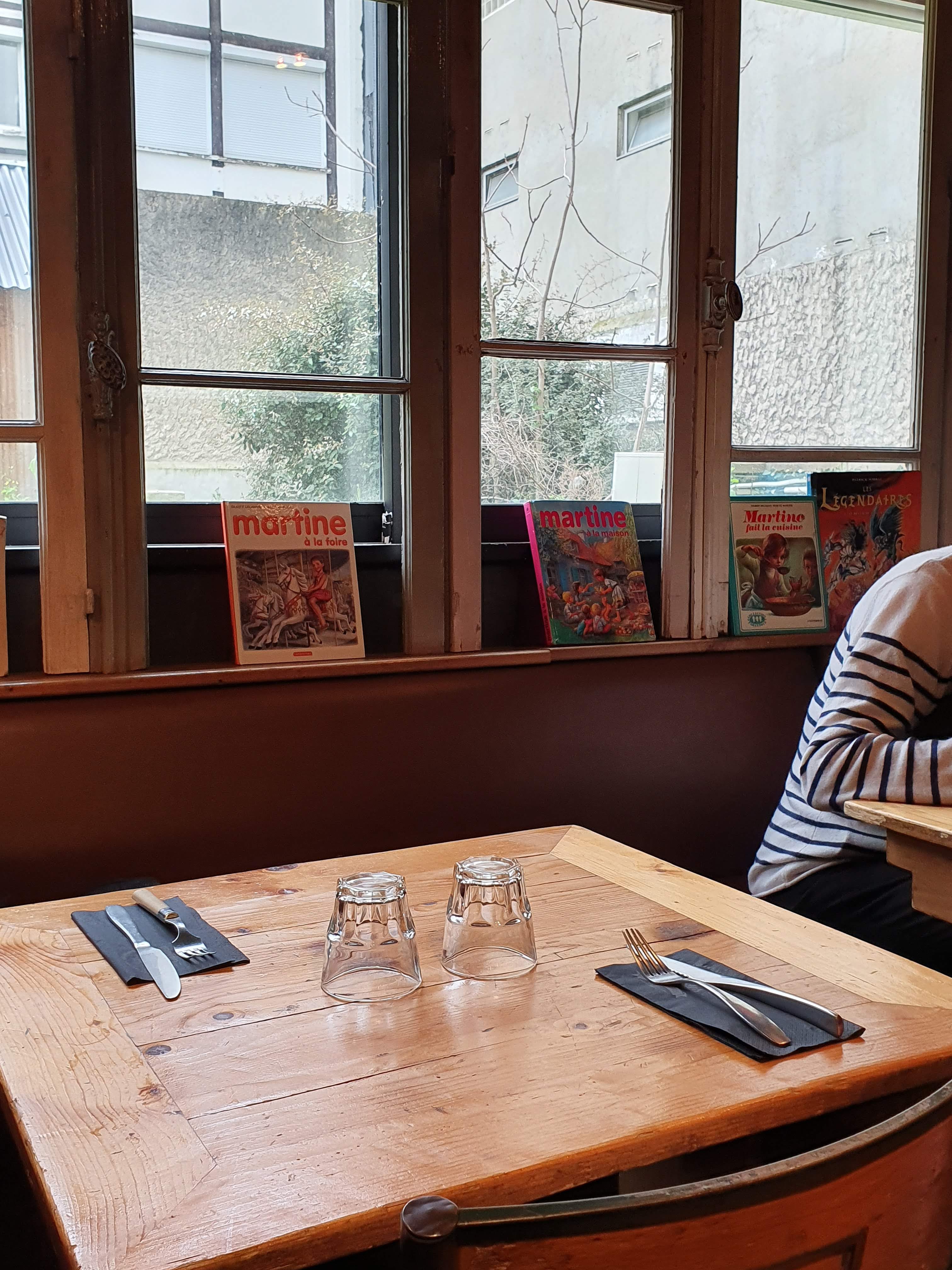 Lieu et déco très sympa sur le thème de la petite maison dans la prairie. Immersion garantie jusque dans la carte déguisée en cahier d école, avec des plats de notre enfance. Nous passons un bon moment, les plats sont plutôt réussis, même si à mon goût le cordon bleu manquait de saveur. Arrive alors le choix du dessert. Le mille feuilles mousse de marron et bailey's nous fait de l'œil. Nous optons quasiment tous pour celui-ci et attendons une vingtaine de minutes avant de voir arriver une assiette avec 3 feuilles de brick qui se battent en duel, de la chantilly industrielle, une cuillère à soupe de crème de marron et un bailey's inexistant. Le tout sans aucun goût. Énorme déception, surtout pour un dessert à 8euros... Nous en avons informé le serveur, mais aucun geste commercial ou quoi que ce soit n à été fait en compensation. Nous sommes restés sur une note amère alors que cela avait bien commencé.