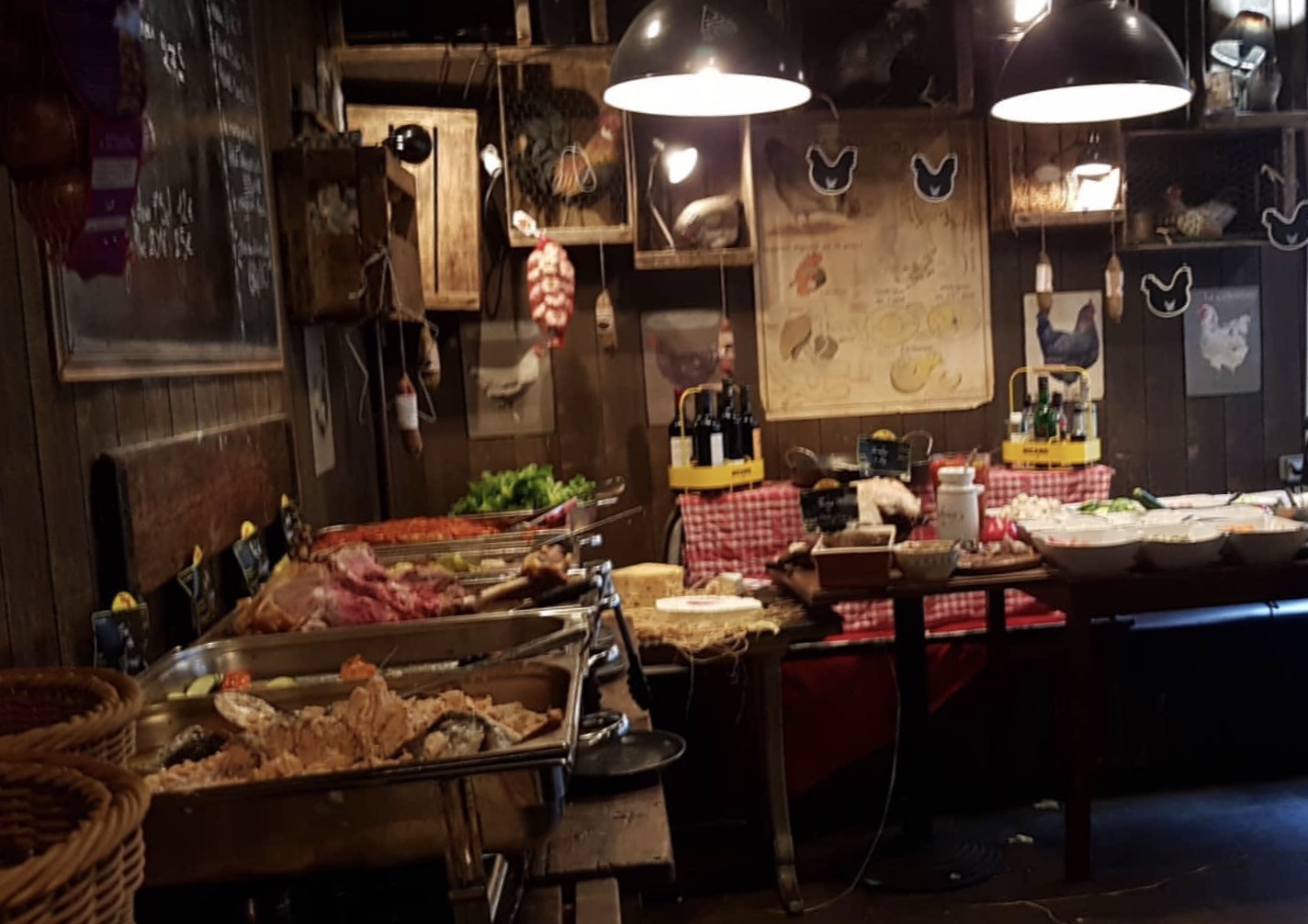 Notre 1ère impression a été mitigée. Entre ceux qui partaient, ceux qui arrivaient, les serveurs etc... un vrai tourbillon. il est vrai que l'entrée où se situent les buffets du brunch n'est pas immense. Le décor est rustique à base de bois en mode écuries (vu la rue...) et sur ke thème petite maison dans la prairie. Il y a du monde, c'est un peu bruyant mais ça passe Côté buffet, pas déçus. nombreux mets froids et chauds. Des viandes et du poisson. Bien cuisinés. L'espace en revanche est assez petit et on fait un peu la queue. Rapport qualité prix bon.