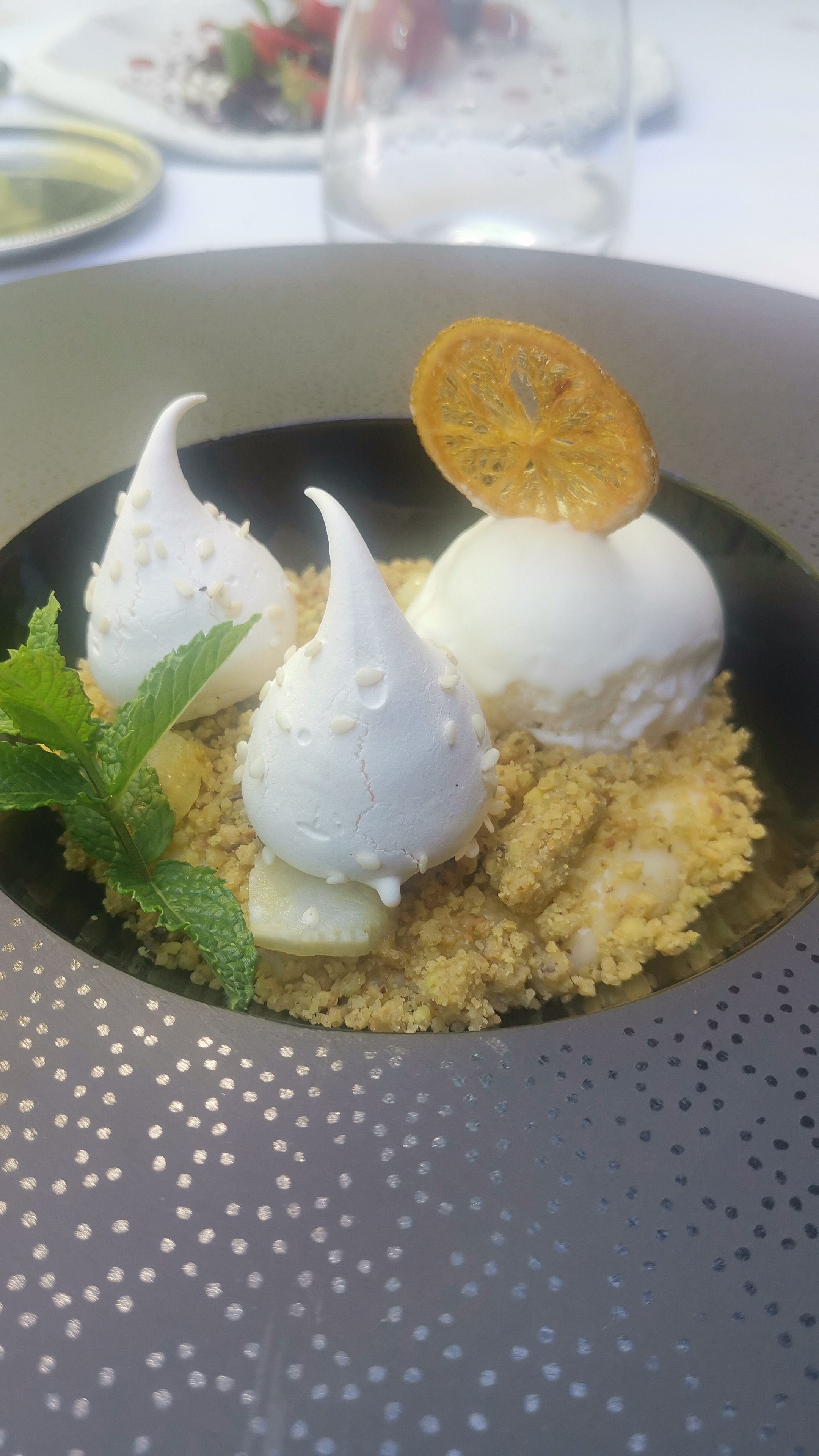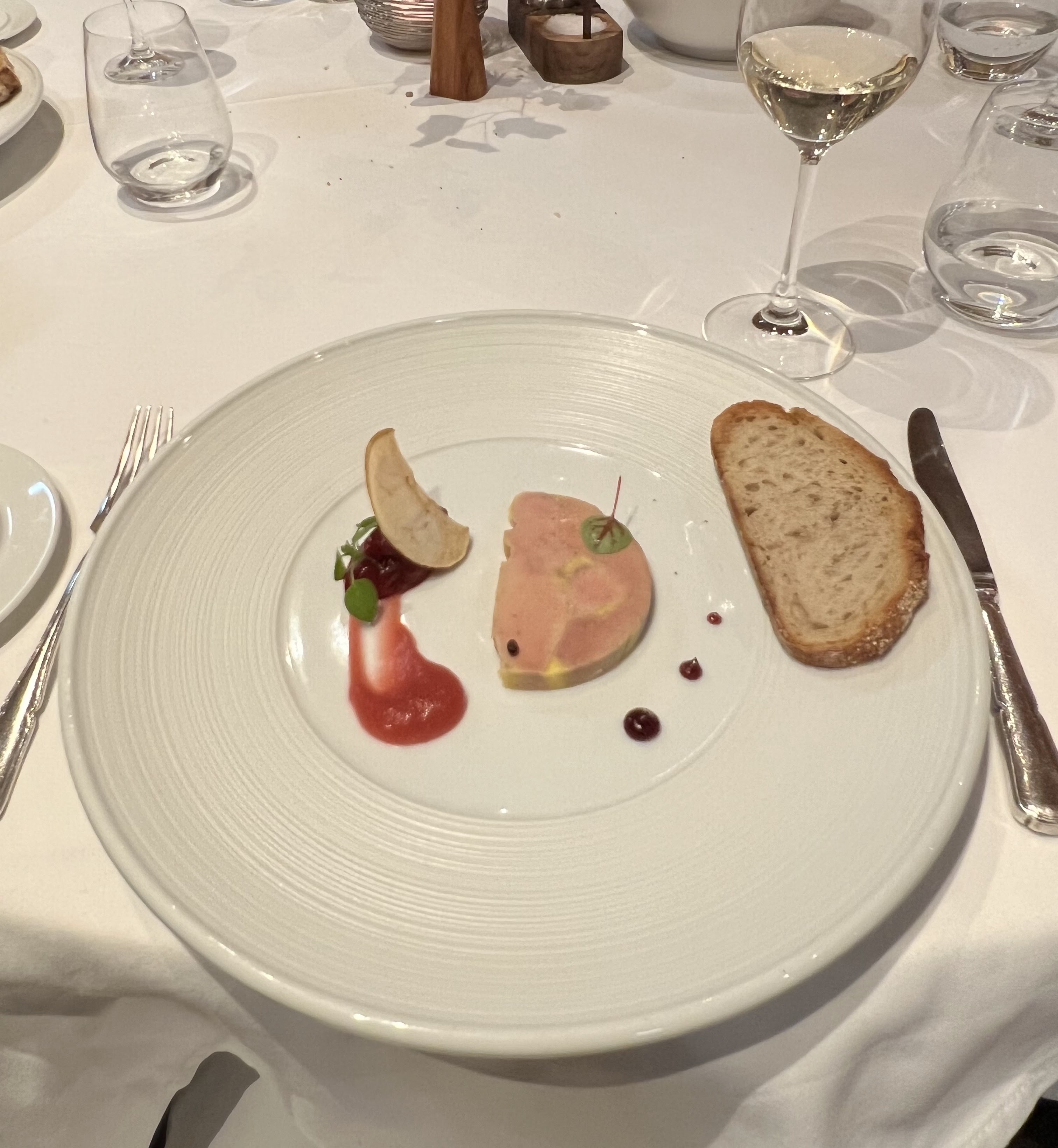Menu dégustation, plat qui sont recherché mais le chef ne sait pas associer les goûts Mise en bouche de soupe de melon quelconque, Le foie gras est très petit Quenelle de poisson au uzo , le goût de l’isolation masque complément le poisson Le rouget sur lit d’aubergine correcte Le bourg entouré de lard avec la sauce qui masquait tout le goût de la viande , le lard masquait le goût du boeuf et les chanterelles aussi ! Et pour couronne le tout un sommelier qui impose des vins au verre de 2021 côté de Provence puis un vacqueras vert de 2020 facturé 13€ , sprez refus de ce vin, il m’a servi un corset hermitage de 2018