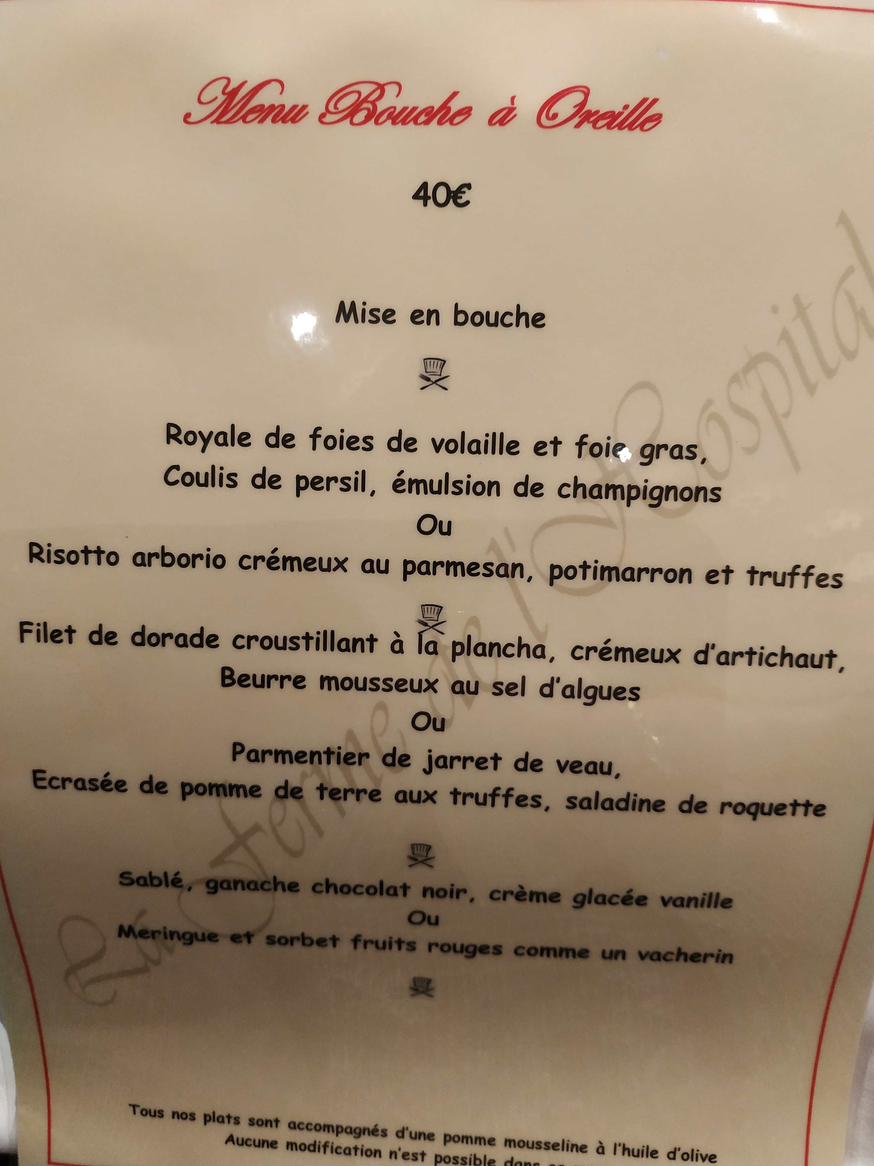 Excellent !! Toujours un plaisir d aller à la ferme de l Hospital, excellente cuisine, service impeccable.. rien à redire !