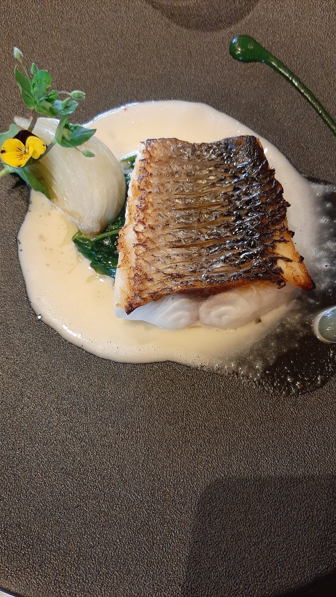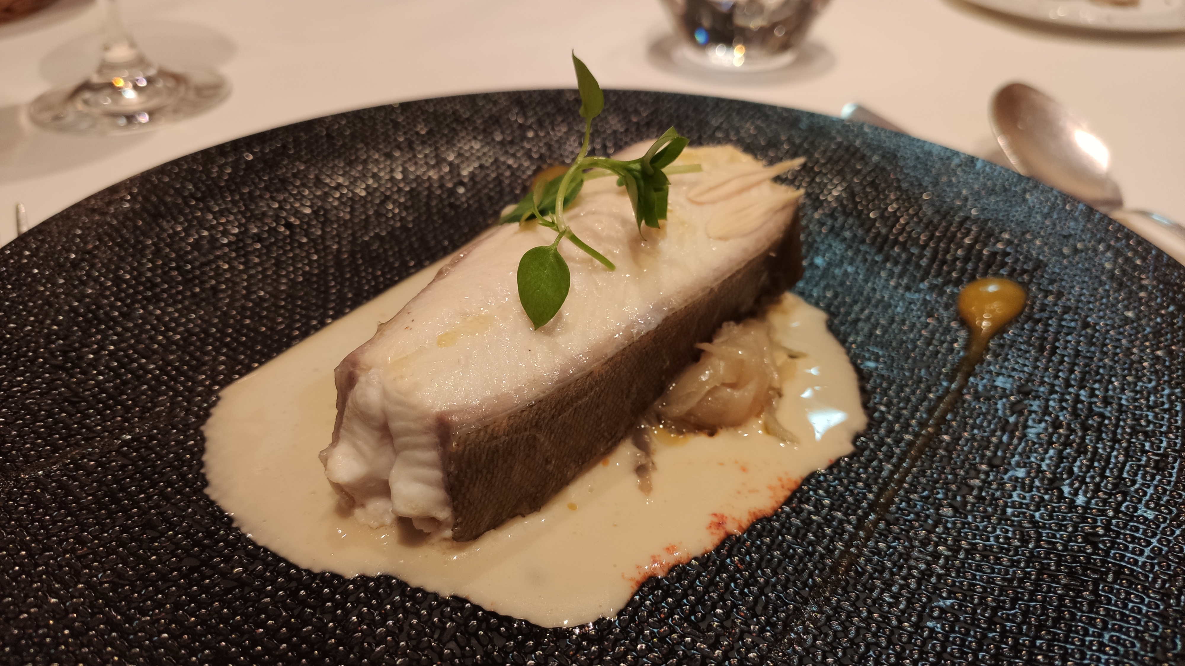 Personnel très professionnel et compétent cuisine créative et très plaisante à l'oeil et au goût Cuisson du poisson extraordinaire Je recommande vivement