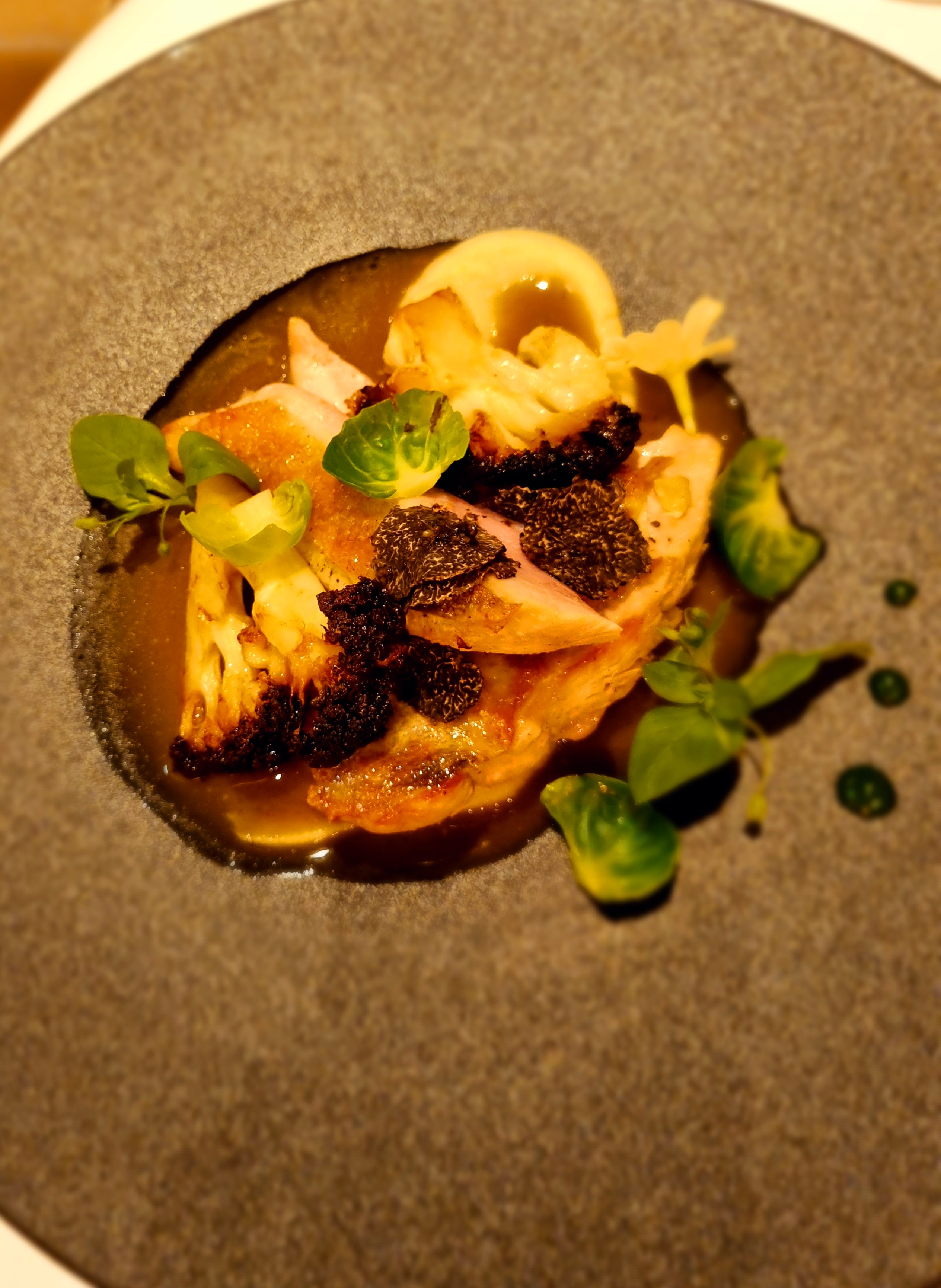 Excellent. Nous avions le menu à 2 plats qui était largement suffisant car en plus de deux plats, vous obtenez un amuse-bouche, un petit plat de chasse entre vos deux plats, une sélection de plateau de fromages et enfin un dessert ! Ça vaut vraiment son début Michelin ⭐