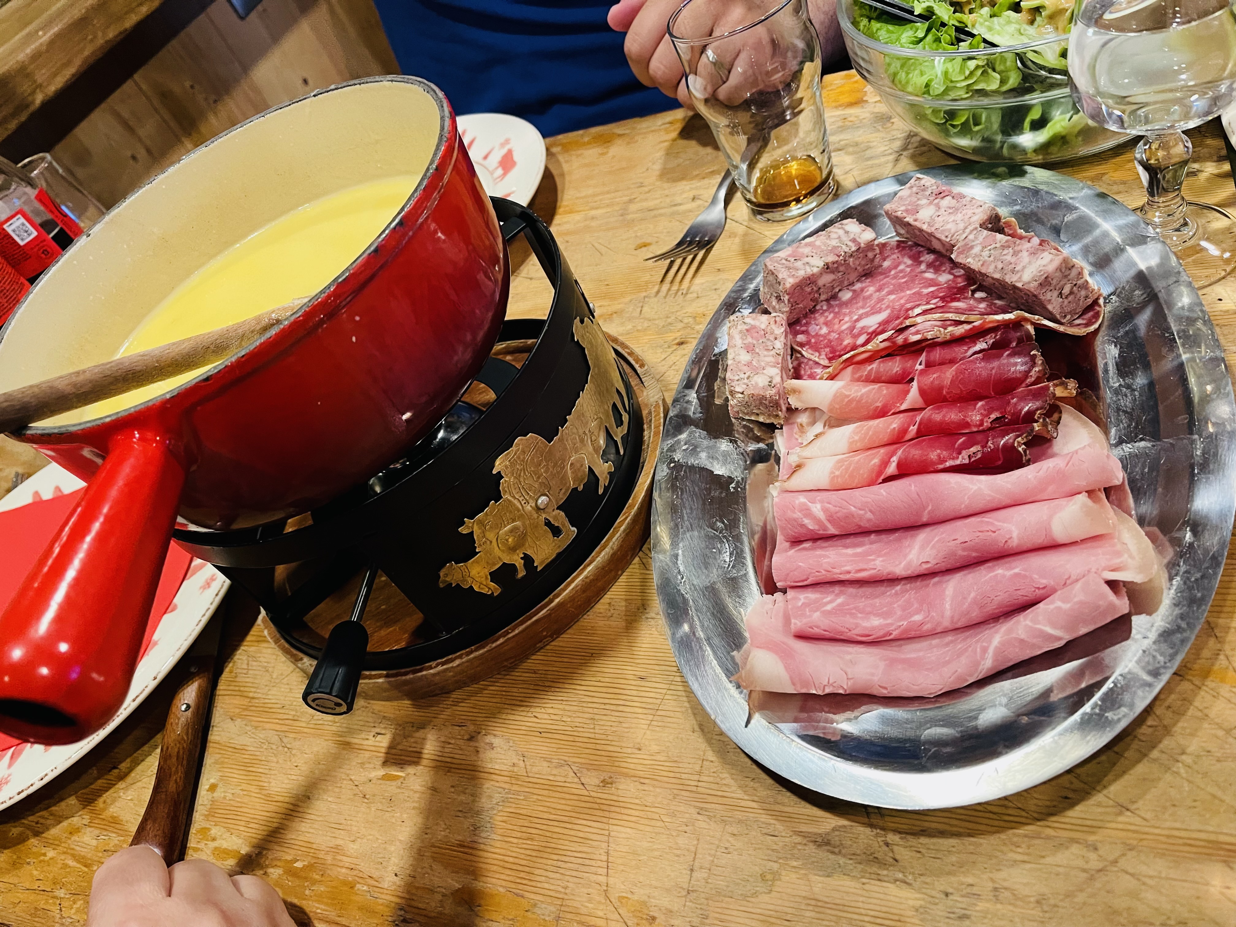 La fondue était délicieuse, la charcuterie également. La vue à l'extérieur est magnifique.