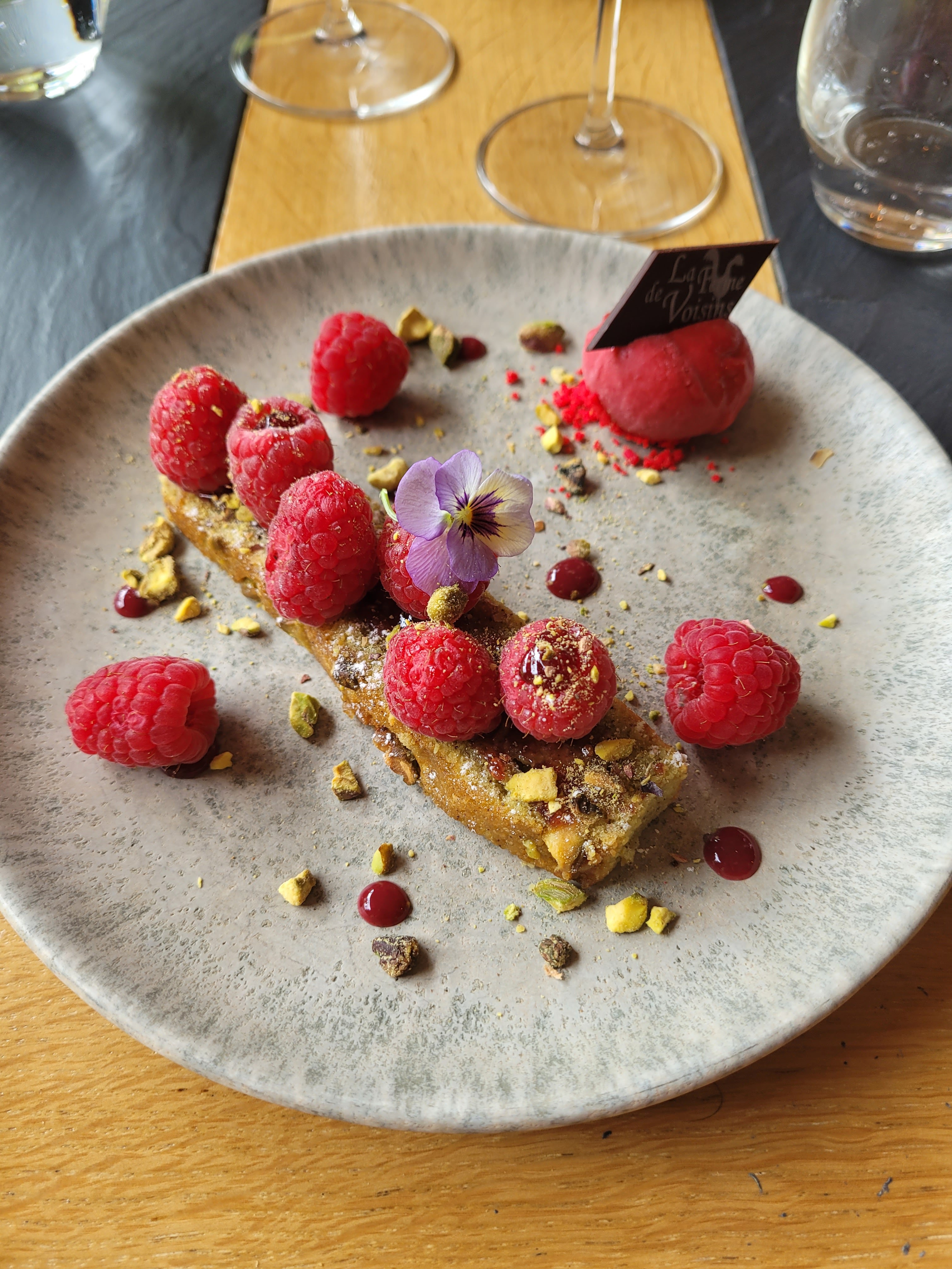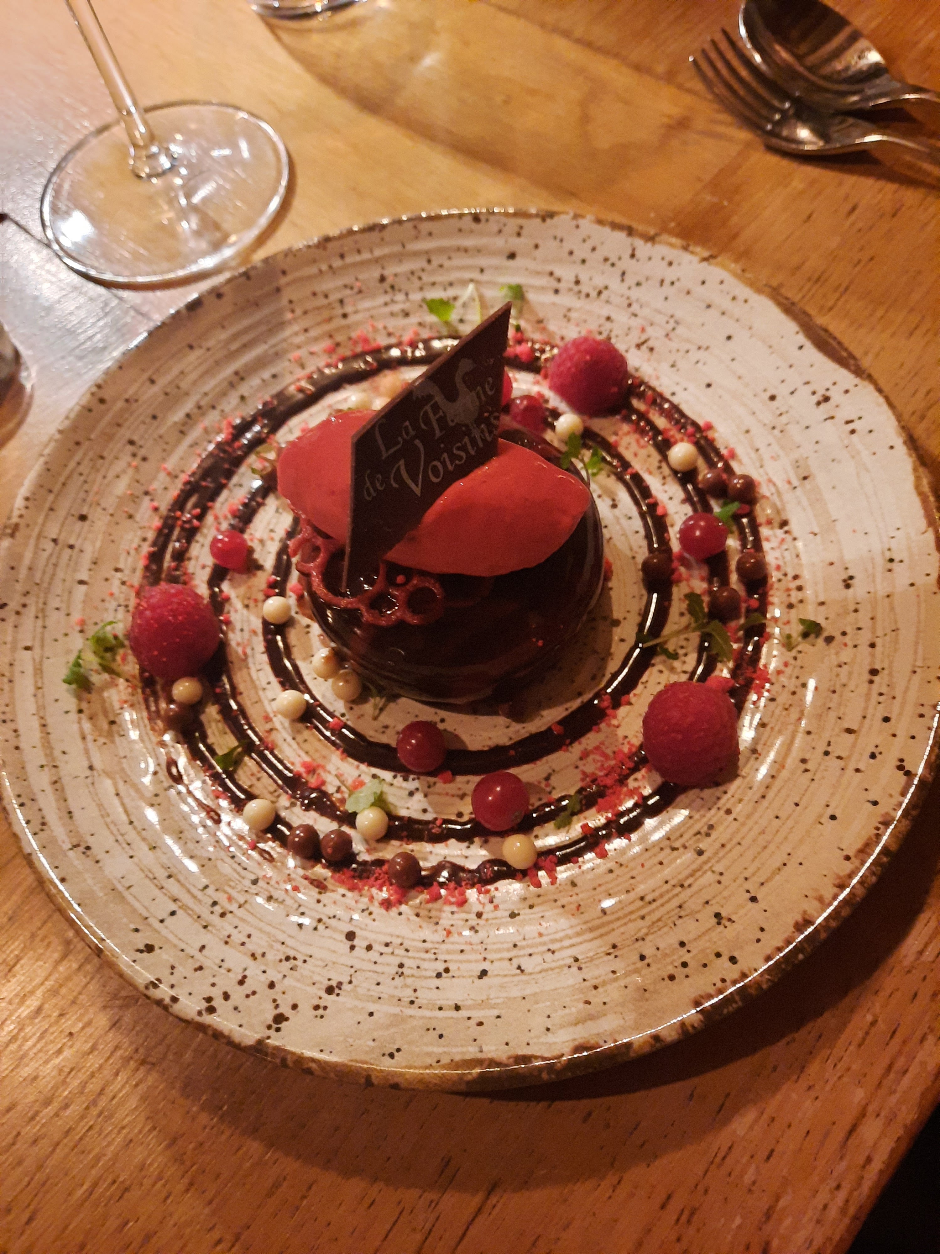 Nous avons choisi ce lieu pour notre premier repas en tant que mari et femme, nous étions très heureux d'avoir fait ce choix ! La qualité est très bonne et les prix tout à fait cohérents. Nous avions même craqué pour le menu découverte à 69€ en 5 services, la surprise à chaque assiette était toujours parfaite. L'équipe est au petit soin pour chaque client, à l'écoute de nos envies si jamais un plat ne nous plaît pas dans la sélection. Merci beaucoup, nous sommes déjà revenus depuis et nous reviendrons encore ! J'ajoute un avis concernant le Click&Collect : Les saveurs sont toujours aussi exquises, Merci à toute l'équipe ! Malgré la complexité de la vente à emporter, vous avez réussi à nous régaler tant gustativement, que visuellement. Nous sommes toujours autant conquis et heureux de venir à La Ferme de Voisins, même si cette fois s'est faite à distance Nous sommes toujours accueillis chaleureusement, et le menu était vraiment très réussi, sans parler des desserts qui sont toujours à tomber par terre... Vivement que nous puissions revenir sur place et profiter du cadre chaleureux que nous offre La Ferme de Voisins habituellement ! A très bientôt !