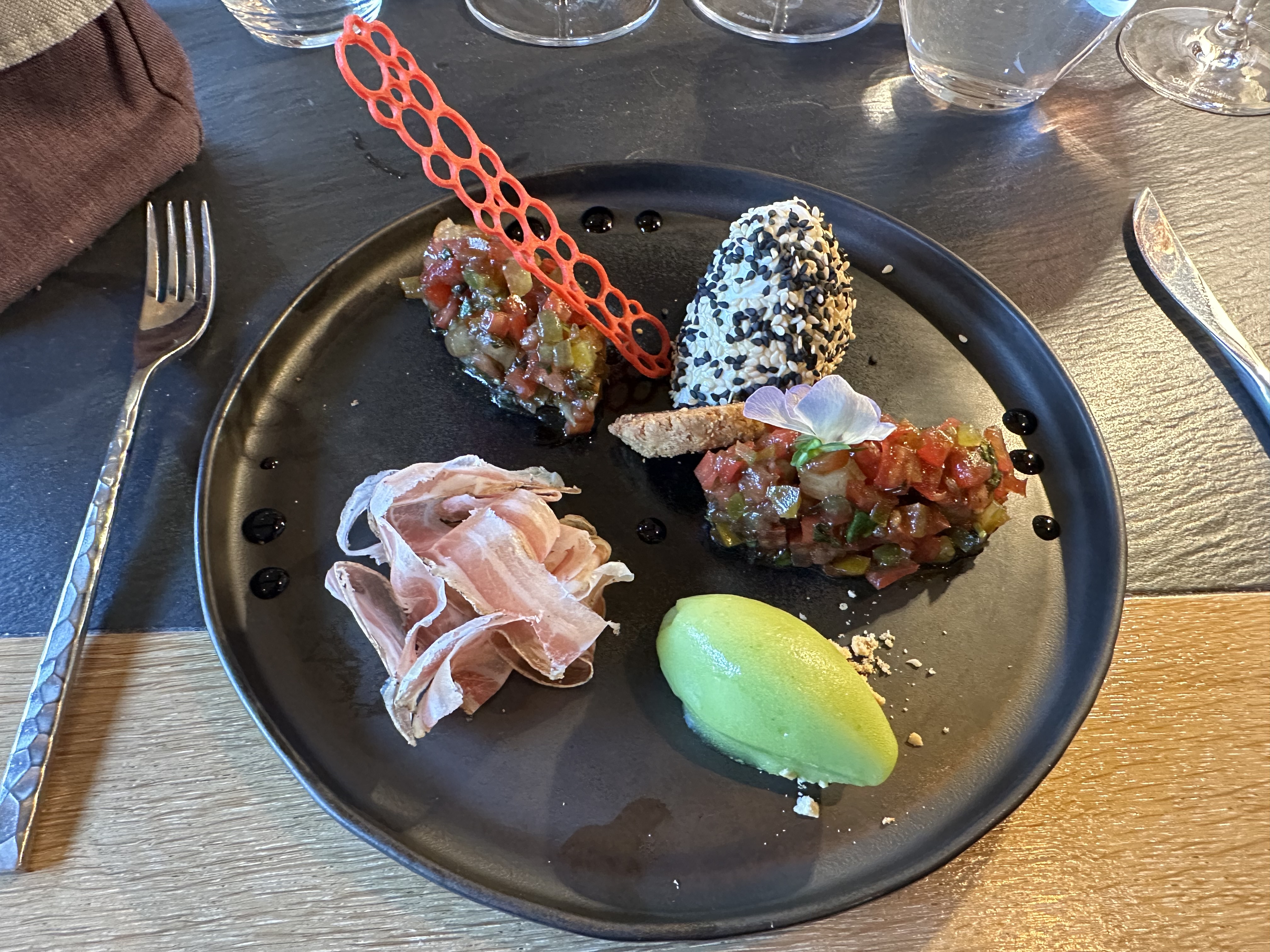 Très bonne dégustation, bons produits. Cette soirée, maître d’hôtel fort désagréable, il faut lui signaler pour qu'il se ravise et s'excuse. Diner dans la cour avec absence de lumière. Deux points négatifs qui n'ont pas permis de passer une très bonne soirée.
