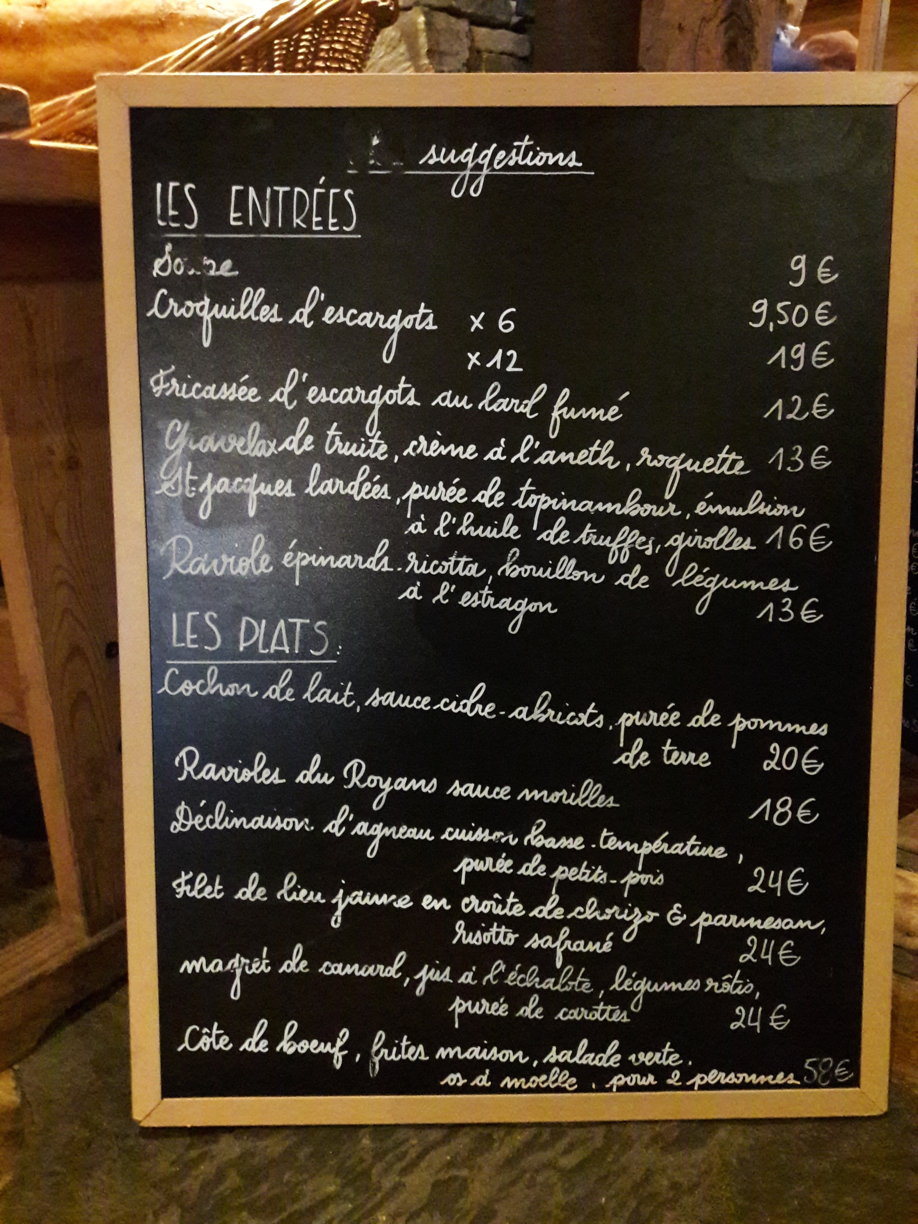 Je recommande la côte de bœuf à deux (ou même trois vu la quantité ;). Superbes produits avec un décor traditionnel et un personnel agréable. A faire après une bonne journée de marche ;)
