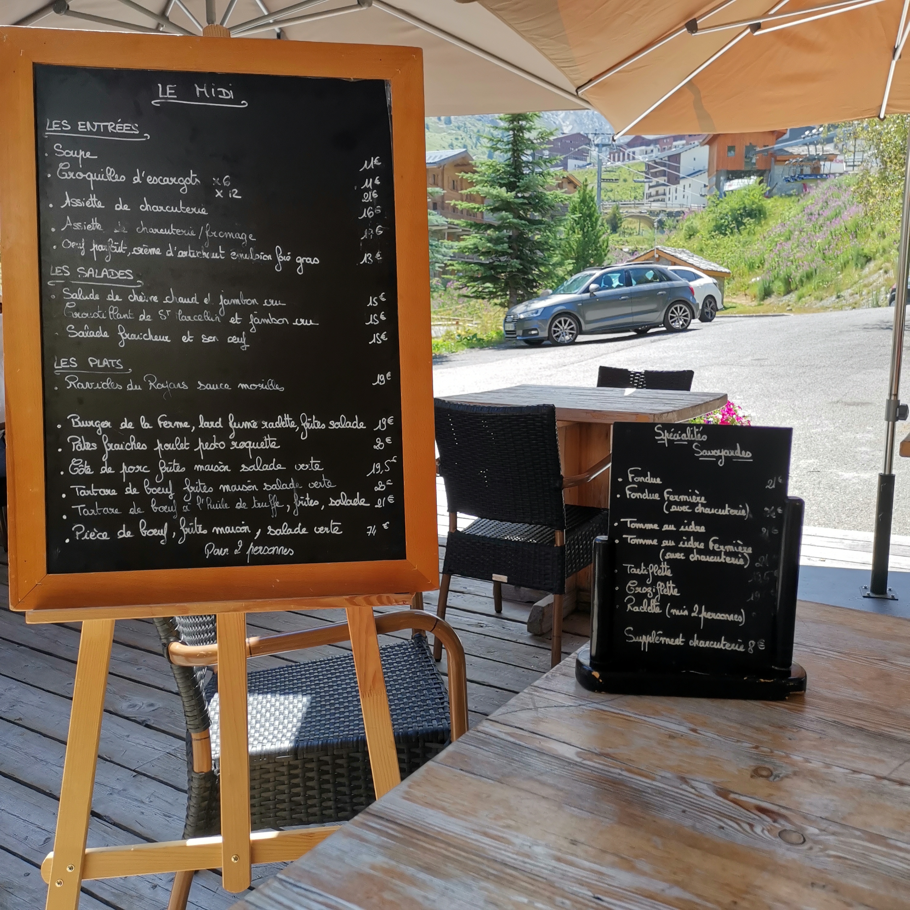 Le cadre est vraiment très original dans une véritable ferme. Les plats sont au très copieux et d'une qualité irréprochable avec un fromage fait maison . Il faudra compter de 18 à 20 euros minimum pour un plat. Un incontournable de Tignes.